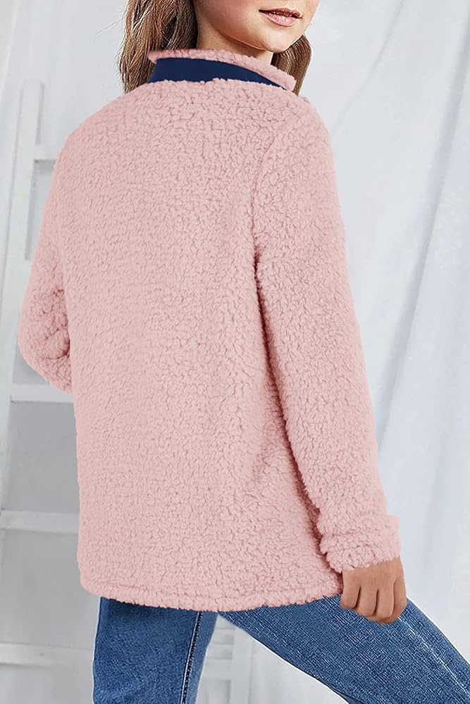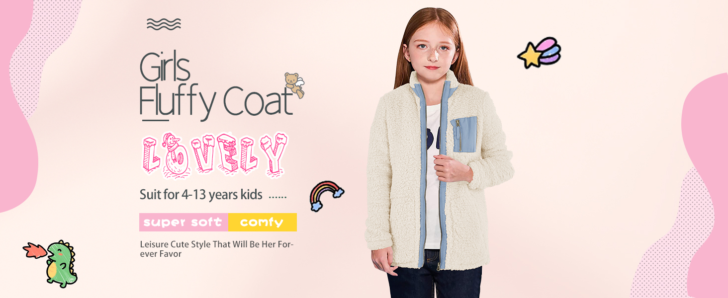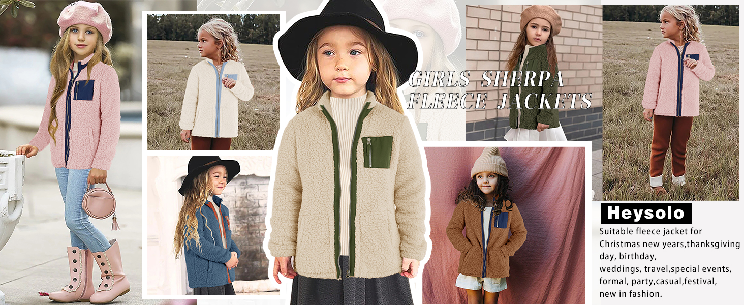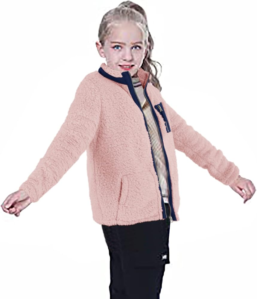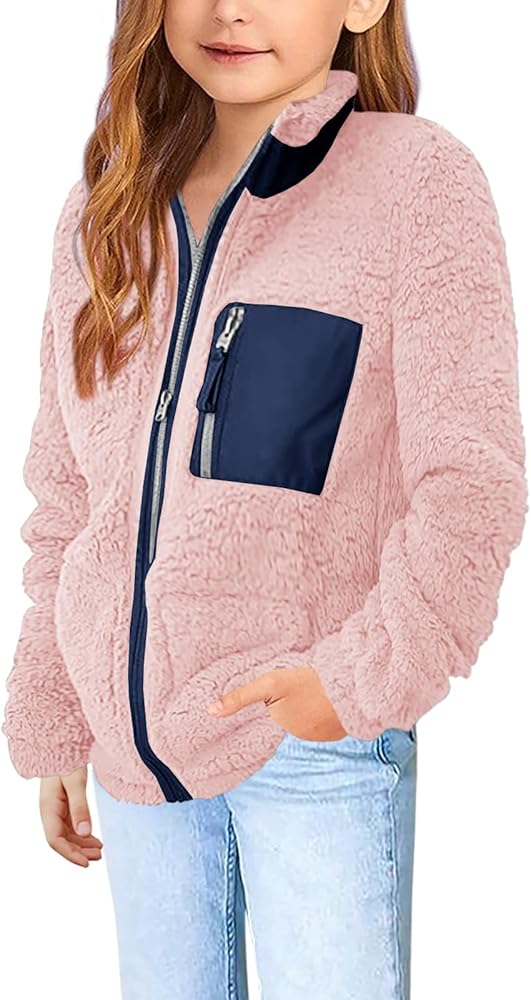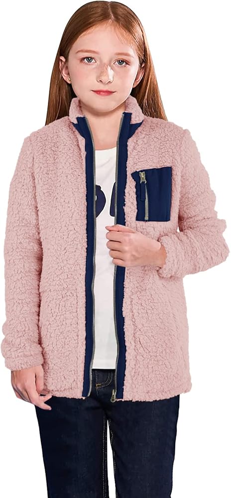 Heysolo Girls Sherpa Fleece Jacket stup up Winter Coats Long Longe for 5-14y مع جيوب