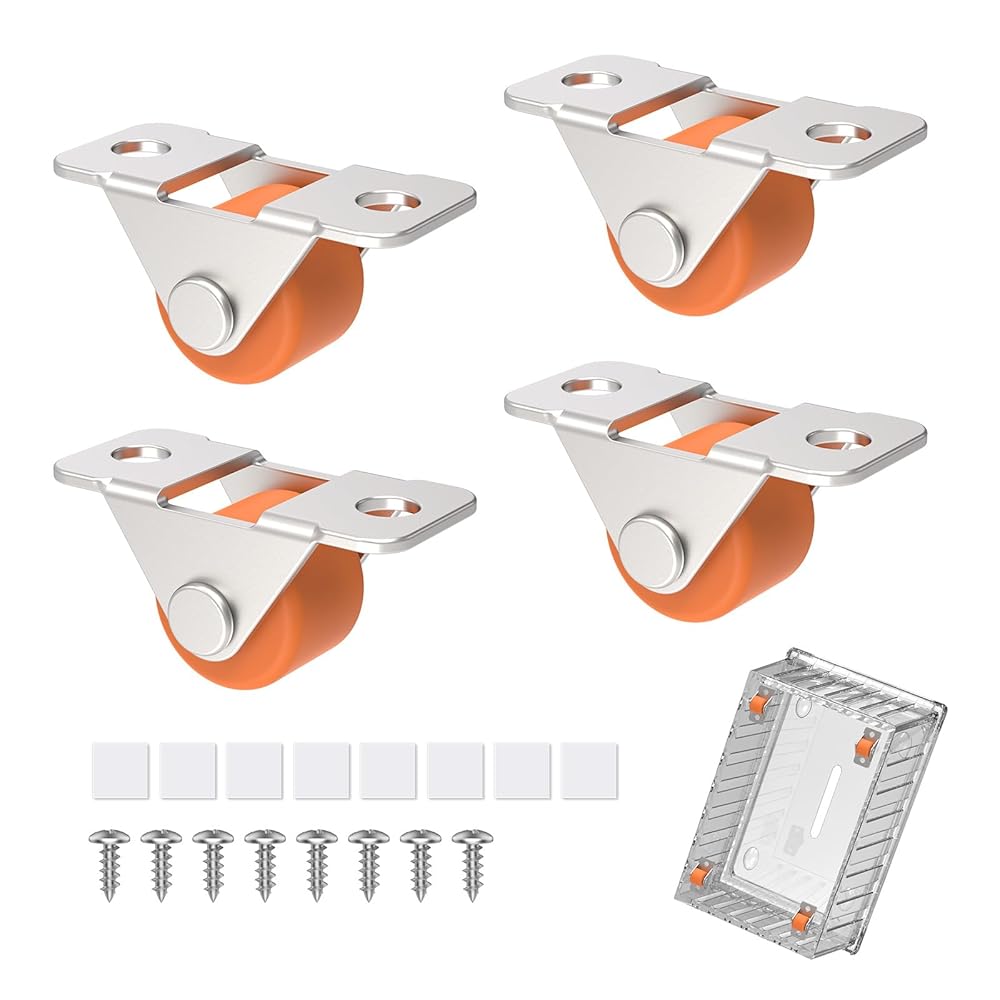 Sturdy & Smooth Rolling: 0.5 inch adhesive caster wheels with steel brackets+ rubber wheels: robust, stable, scratch-resistant and wear-resistant. The package includes 4 casters, plus all necessary screws and adhesives for easy setup