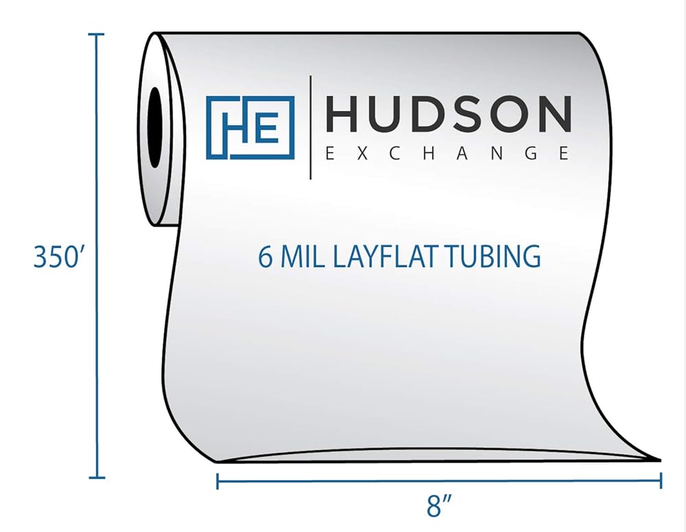 8" W x 350' L, 6 Mil - Extra Heavy Duty. Hudson Exchange brings you their roll of poly tubing. Our tubing is constructed of LDPE plastic and will help protect your items. Simply cut tubing to your exact length and seal with a heat sealer. Included is a black plastic 1" diameter insert, when removed the core is 3" and constructed of cardboard.