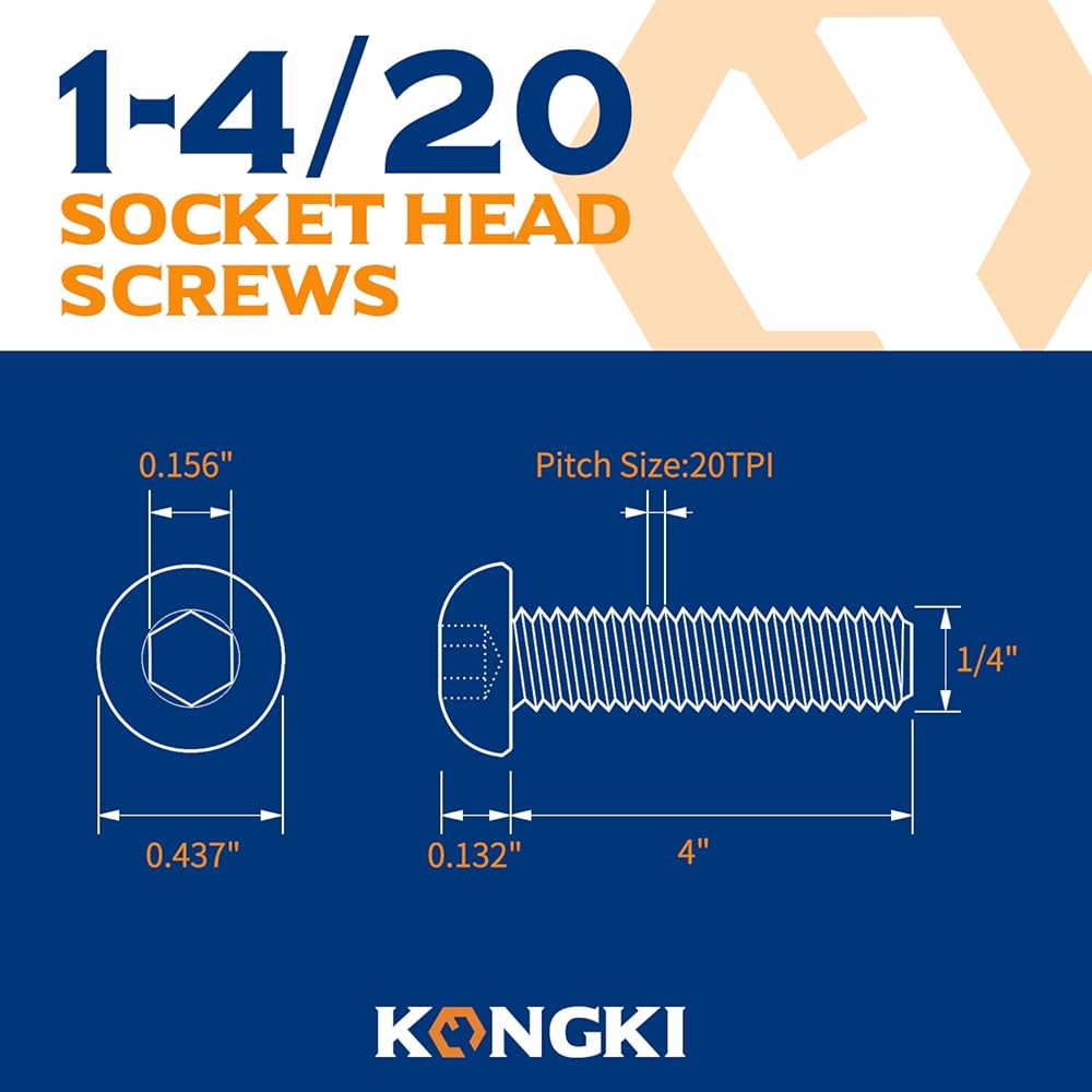✅ المواصفات والسلامة: تتضمن 20 مسمارًا سداسيًا ملولبًا باليد اليمنى + مفتاح سداسي واحد. المواصفات: قطر 1/4 بوصة، مسافة خيط 1/20 بوصة، طول 4 بوصة، قطر الرأس 0.425 بوصة (انظر الرسم البياني). تحذير: يحتوي على أجزاء صغيرة - يُحفظ بعيدًا عن متناول الأطفال.