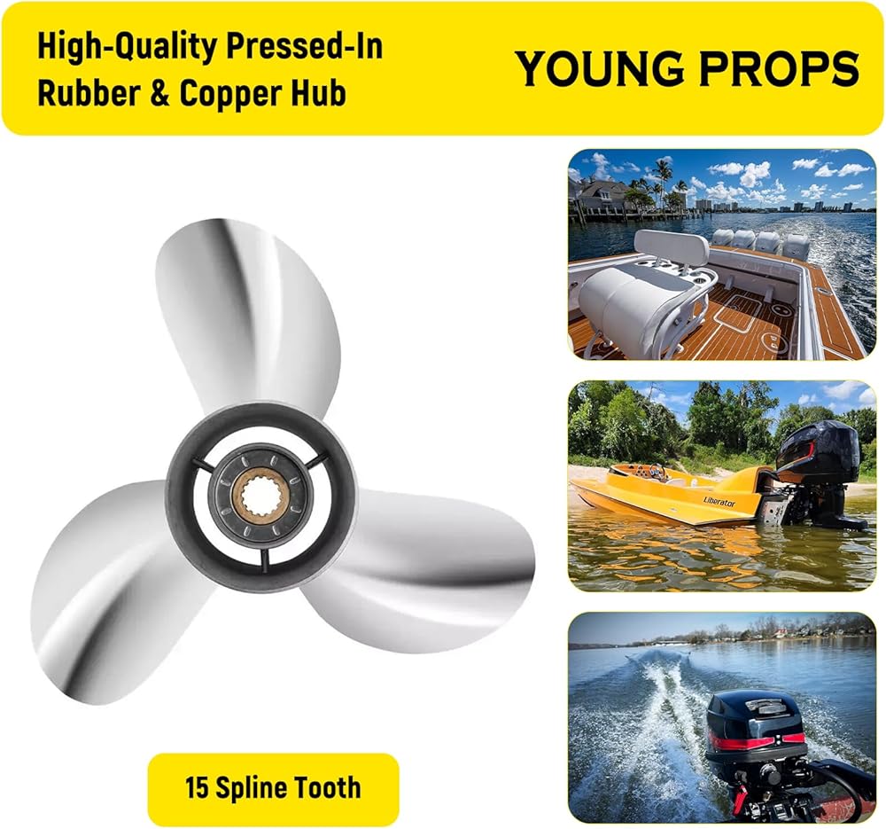الدعائم الشابة 13 1/2x17 مروحة القارب الخارجية من الفولاذ المقاوم للصدأ لمحركات ياماها 50 70 75 80 90 100 115 125 130HP 13 1/2x17 الدعامة 15 سن RH