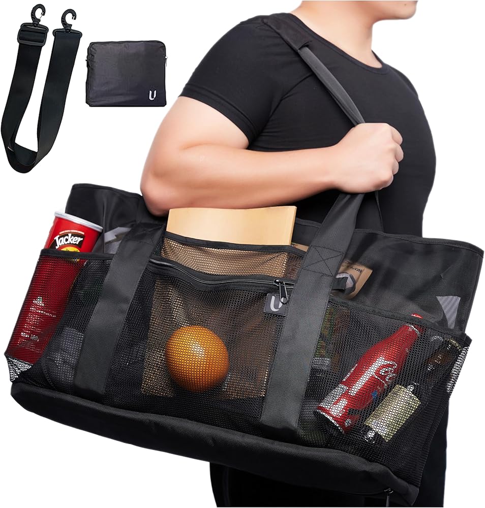 حقيبة شاطئ كبيرة من Uhawi بحجم XXL - مواد صديقة للبيئة + حقيبة شاطئ قابلة للطي