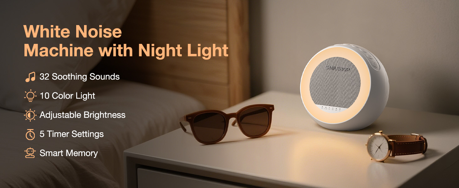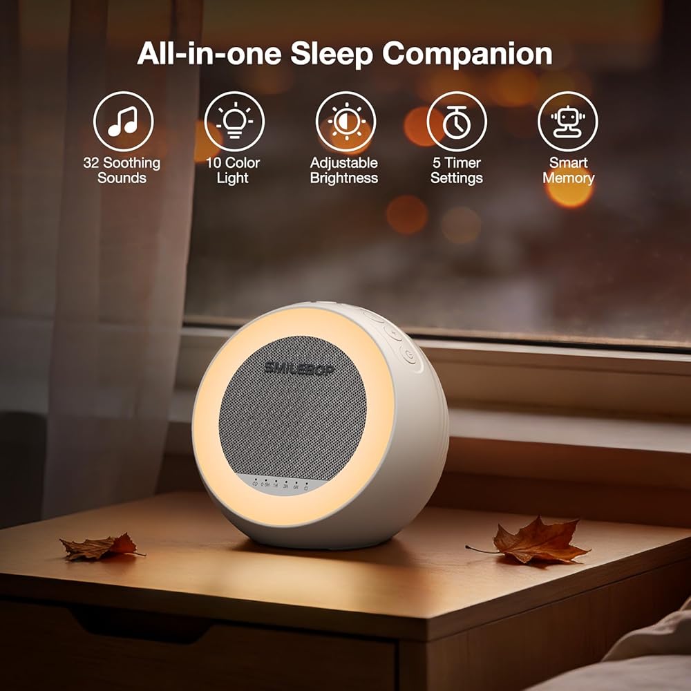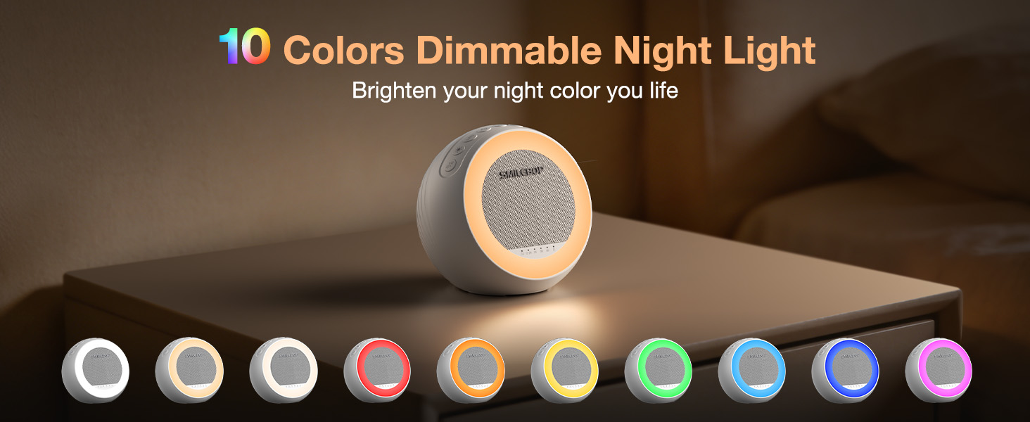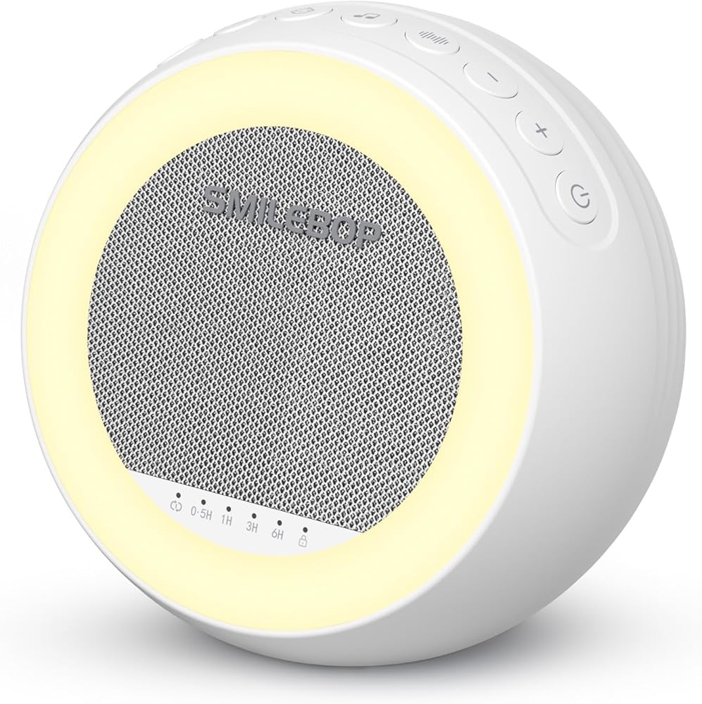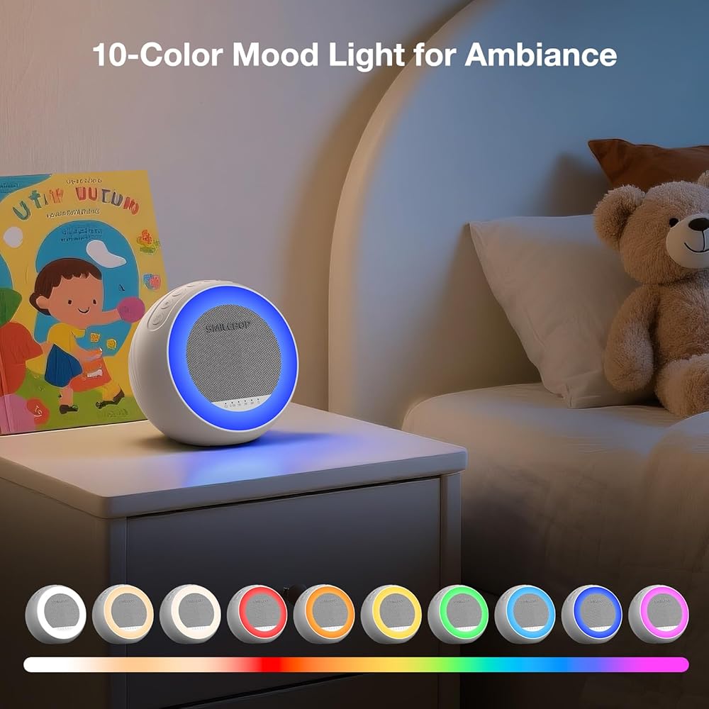 آلة صوت ضوضاء بيضاء مع ضوء ليلي، آلة صوت محمولة للأطفال والكبار مع ضوء ليلي بـ 10 ألوان، 32 صوتًا مهدئًا و5 مؤقتات للحضانة والخصوصية في المكتب المنزلي والسفر