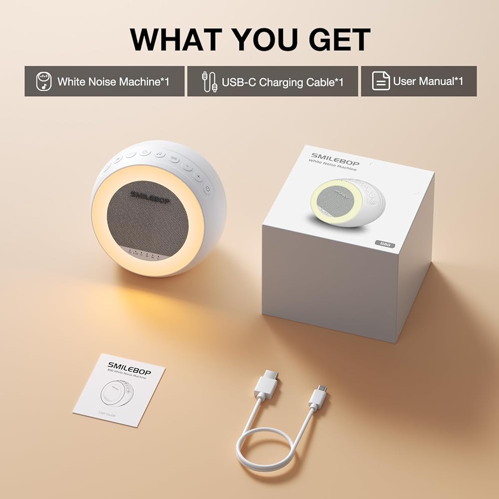 🎵【مكتبة 32 صوتًا مهدئًا】 - انطلق بشكل أسرع مع المكتبة الواسعة لآلة الصوت ذات الضوضاء البيضاء التي تضم 32 صوتًا عالي الدقة، بما في ذلك 6 أصوات بيضاء وأصوات مروحة، و9 تهويدات وأصوات رحم، و18 صوتًا طبيعيًا غامرًا. يخفي بشكل فعال الضوضاء الخارجية للعمل المركّز أو النوم العميق.
