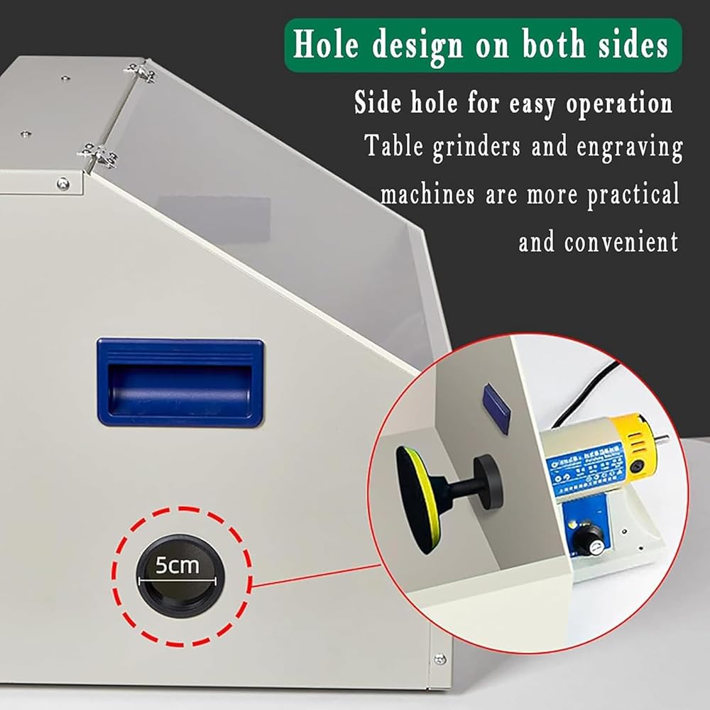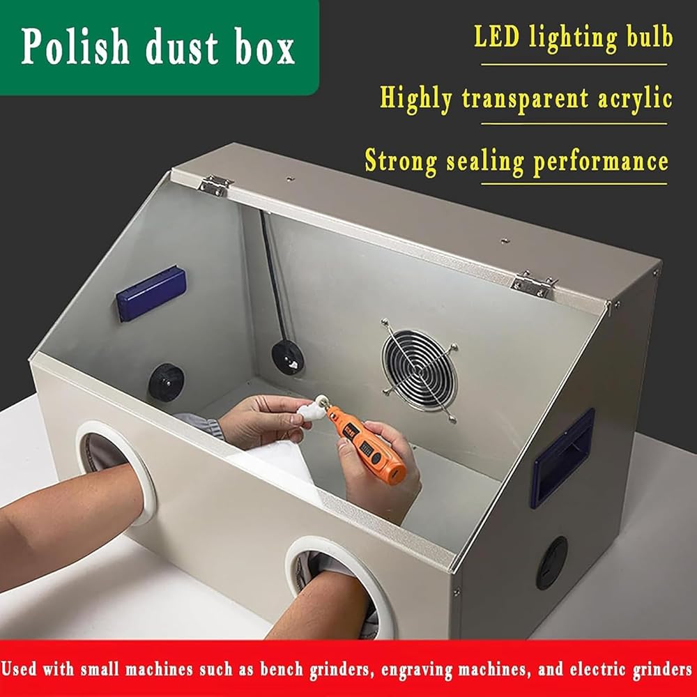 مجمع الغبار الرملي للمختبر، صندوق تجميع الغبار النقش مع إضاءة LED ونافذة شفافة، مروحة قوية 2800 دورة في الدقيقة، للطحن/النقش/التلميع/الحفر/القطع