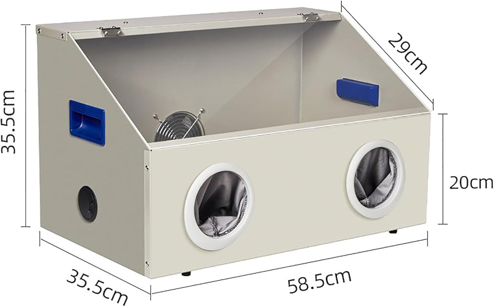 • ➤Scope of application: The dust-proof operating box can prevent the spread of dust during the sandblasting process, reduce the harm of dust to doctors, and avoid the occurrence of occupational diseases. Suitable for dentures, jewelry, jade, stone carvings, wood carvings, gold, and handicraft engravings