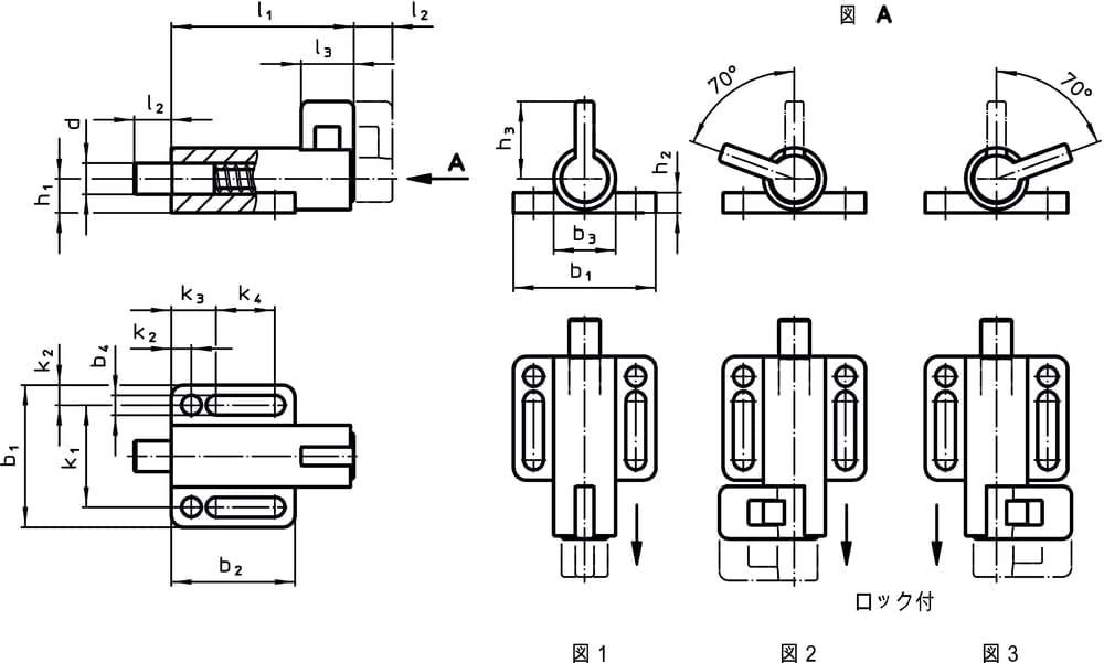 In the design with lock, the latch is pulled out, rotated 70° and secured by the locking notch (if the locking pin must not protrude).