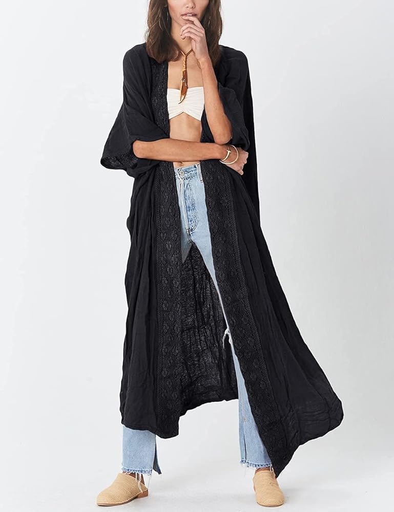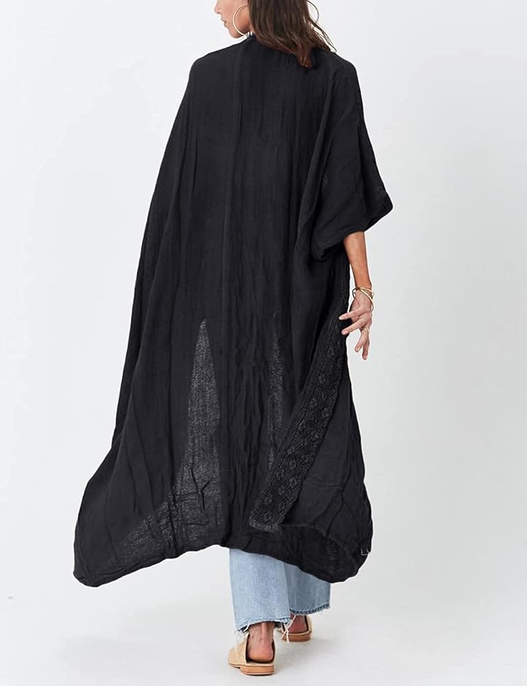 - 【المميزات】سترة كيمونو طويلة مثيرة مفتوحة من الأمام مع زينة كروشيه خاصة، نصف كم متأرجح، خفيفة الوزن