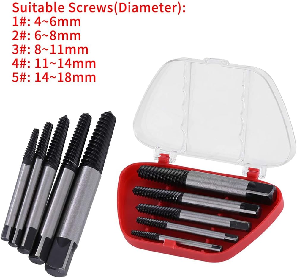 [Complete Size Range] The set includes 5 extractors in various sizes covering screws with diameters from 4mm to 18mm. this comprehensive range ensures you have the right tool for any job whether working with small household screws or larger industrial bolts.