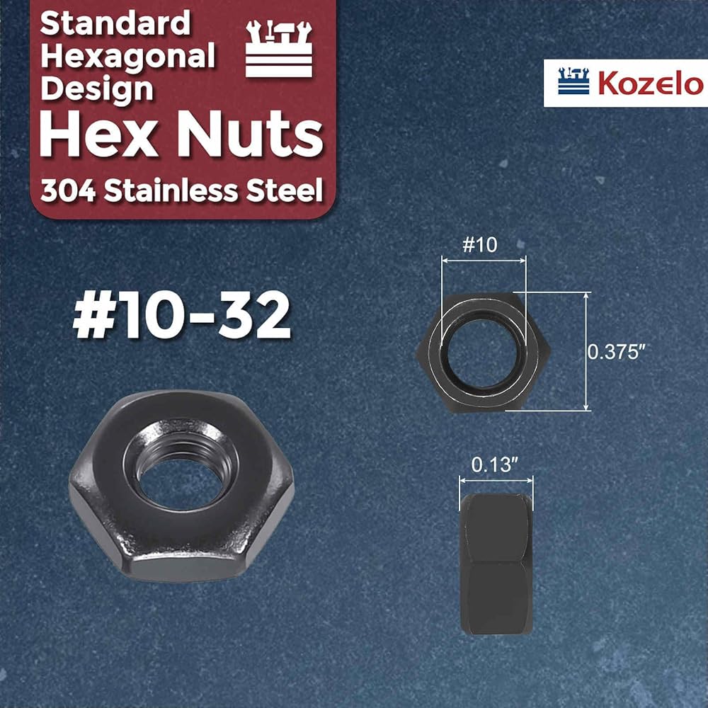 100 قطعة من صواميل سداسية - [#10-32] 304 من الفولاذ المقاوم للصدأ 18-8 (A2-70) صواميل للإصلاح الميكانيكي والتجميع، صامولة ذات خيط رفيع قياسي بوصة، لمسة نهائية من أكسيد الأسود، أسود