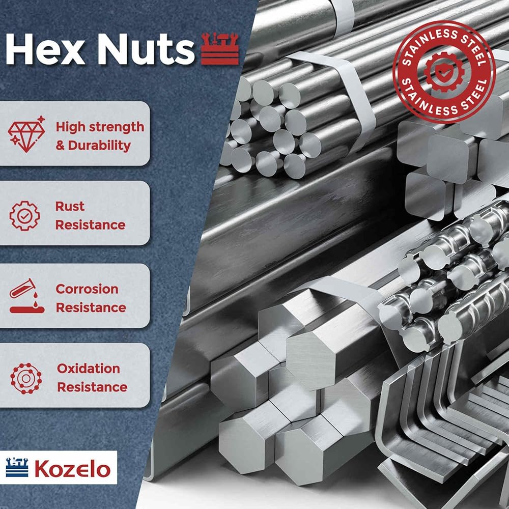 • 2- المادة - الصواميل السداسية الخاصة بنا مصنوعة من الفولاذ المقاوم للصدأ 304 18-8 (A2-70)، وتتميز بالمتانة ومقاومة الصدأ ومقاومة التآكل ومقاومة الأكسدة القوية. إنها تتوافق مع ASME/ANSI B 18.2.2، مع أنماط خيوط واضحة وأسطح ناعمة تمنع خدوش اليد.