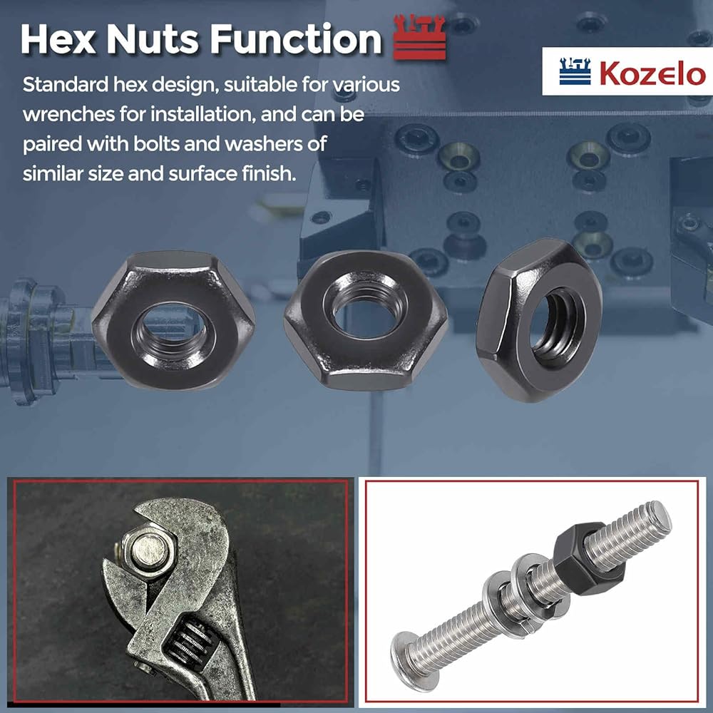 • 3- التطبيق - المكسرات السداسية مناسبة للتجميع والإصلاح العام، وكذلك المعدات الصناعية والآلات الزراعية والأدوات وغيرها من أعمال الصيانة والتجميع الميكانيكية. كما أنها مناسبة للمعدات الداخلية/الخارجية التي تتطلب مقاومة للتآكل، وبناء النماذج، وإصلاح صواميل دولاب الموازنة بالمنشار الجنزيري، والعديد من التطبيقات الأخرى. بالإضافة إلى ذلك، يمكن إقرانها بمسامير وغسالات ذات حجم مماثل وتشطيب سطحي للتثبيت الآمن.
