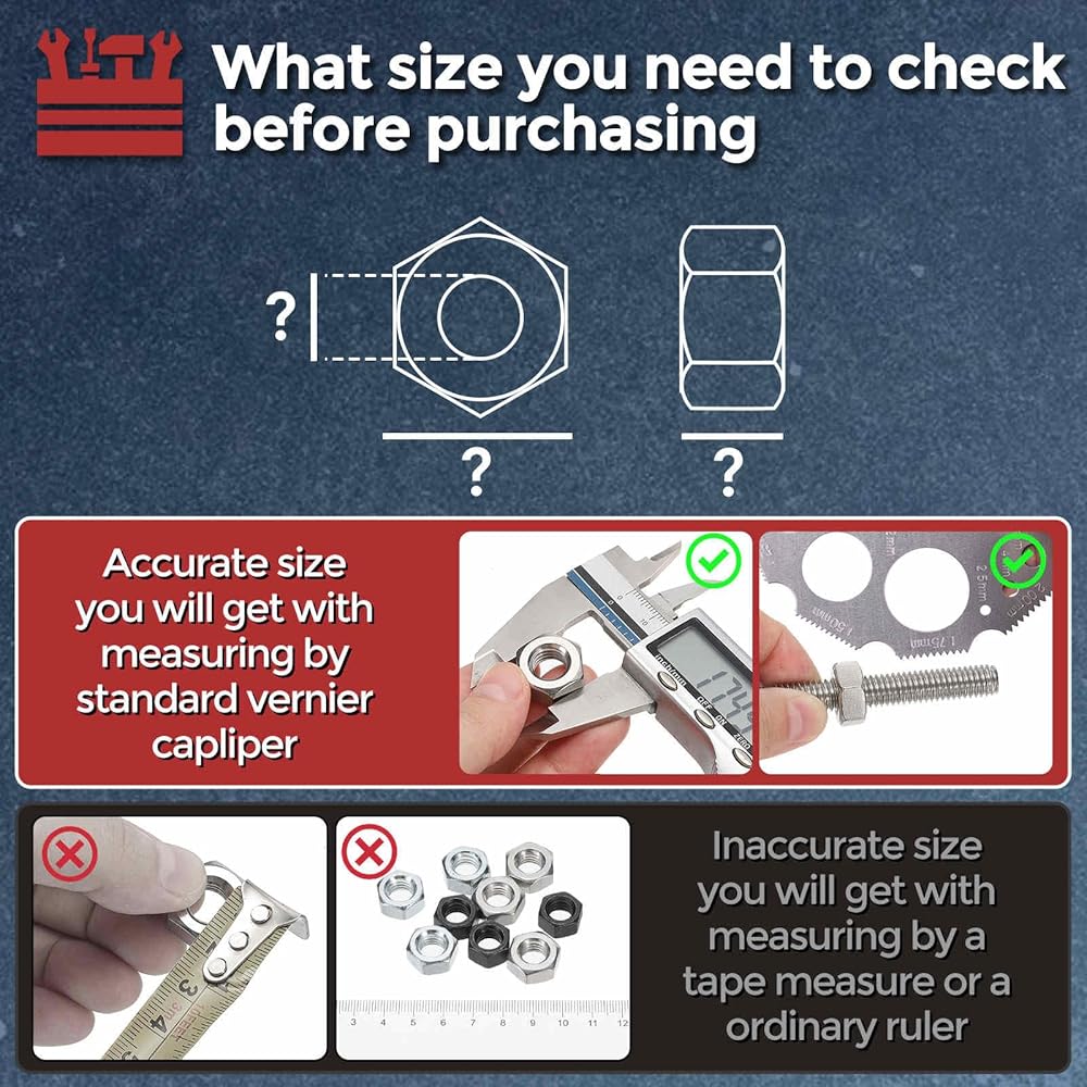 • 5- الاستخدام/ملاحظة - يرجى التحقق من معلمات الصمولة السداسية: حجم الخيط، وقطر الخيط، ودرجة المادة - لضمان التوافق الكامل مع مواصفات المسمار الخاص بك.