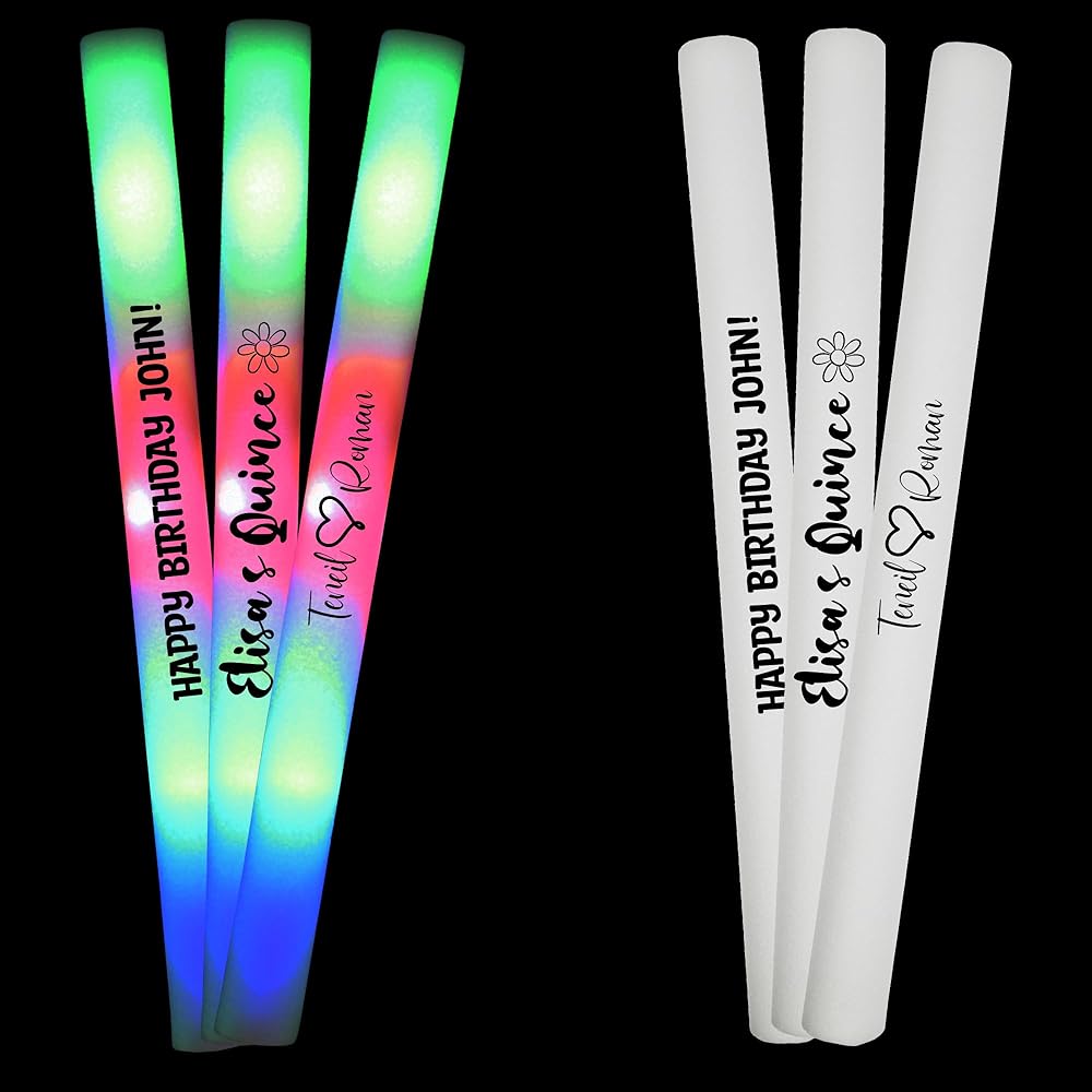 Light up the night: Come on and join the fun! Light up the night with our LED foam sticks! These unique party accessories are perfect for concerts, clubs, parties, bachelor/bachelorette parties, weddings, promotions, nightlife, raves, and any other nighttime event! Just press the button to turn on the bright, colorful LEDs. The built-in battery lasts for hours of continuous use. So get ready to let your light shine at your next big party!