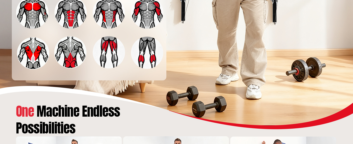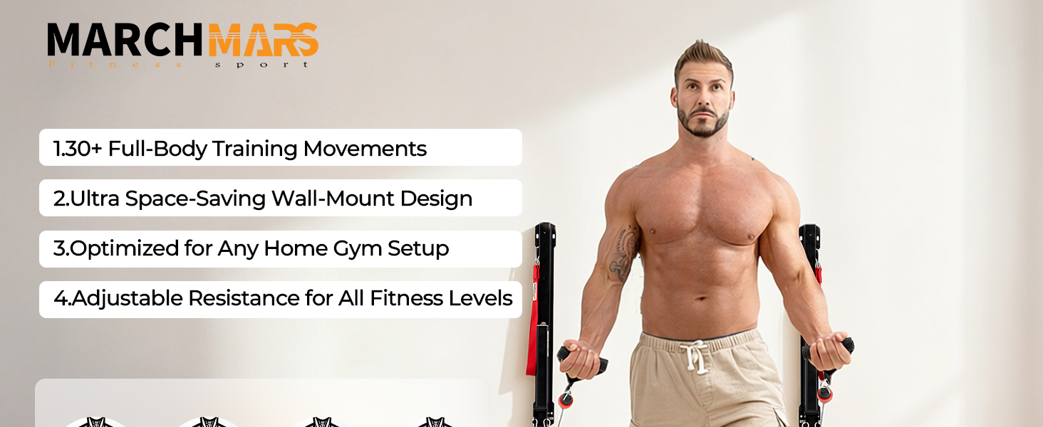 جهاز كابل للجيم المنزلي، معدات تمارين وتمرين مثبتة على الحائط مع مقاومة قابلة للتعديل، معدات لياقة بدنية مدمجة، مدرب متعدد الوظائف لتقوية الجسم بالكامل، توحيد اللون، تدريب إعادة التأهيل