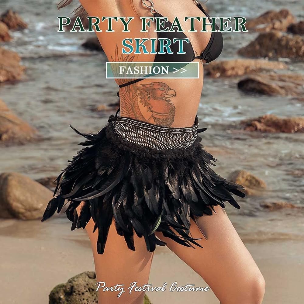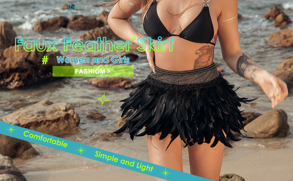 - تتميز تنورة ريش الحفلات بتصميم فريد وبسيط وخفيف. يمكن أن تتناسب هذه التنورة مع جميع أنواع الملابس، مثل البكيني والتيشيرت.