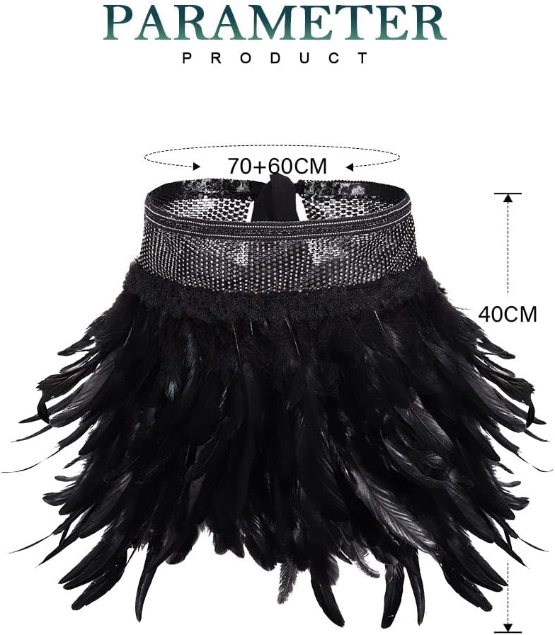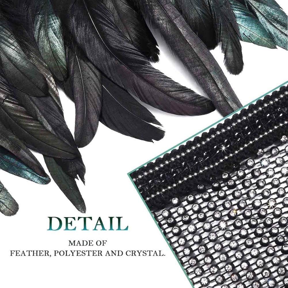 - التنورة السوداء مصنوعة من الريش والبوليستر والكريستال. كما هو موضح في الصورة.