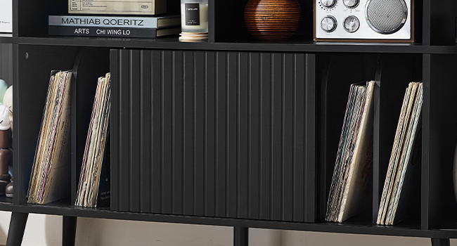 مساحة تخزين مناسبة: يحتوي حامل مشغل الأسطوانات هذا مع مساحة تخزين الفينيل على 8 مساحات واسعة يمكنها بسهولة تخزين 450 نمطًا مختلفًا من سجلات الفينيل. لقد قمنا بتصميم العديد من مناطق العرض المفتوحة الفريدة لحامل التسجيل الخاص بك، مما يسمح لك باختيار سجل الفينيل والدعائم الموسيقية التي تحتاجها بحرية. يمكن أن يستوعب الجزء العلوي الواسع من حامل القرص الدوار أحجامًا مختلفة من الأقراص الدوارة، مما يلبي احتياجات جميع عشاق تسجيلات الفينيل