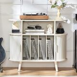 حامل مشغل تسجيل مستدير حديث في منتصف القرن: يبلغ مقاس حامل الفينيل الكبير 55 بوصة (عرض) × 15.8 بوصة (عمق) × 30 بوصة (ارتفاع). تتميز خزانة التسجيل الواسعة بخمسة أرجل من الخشب الصلب مقاس 6 بوصات، مما يعزز قدرتها على التحمل. لا تعمل خزانة التسجيل هذه فقط كحل تخزين من الفينيل ولكن أيضًا كخزانة ملفات الدراسة، أو حامل تلفزيون في غرفة المعيشة، أو منضدة في غرفة النوم