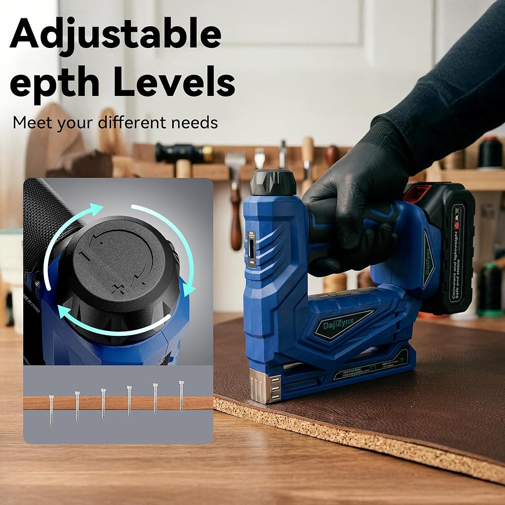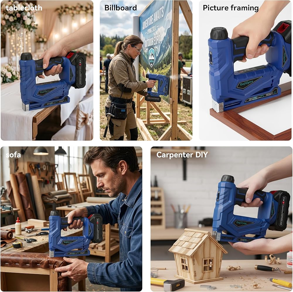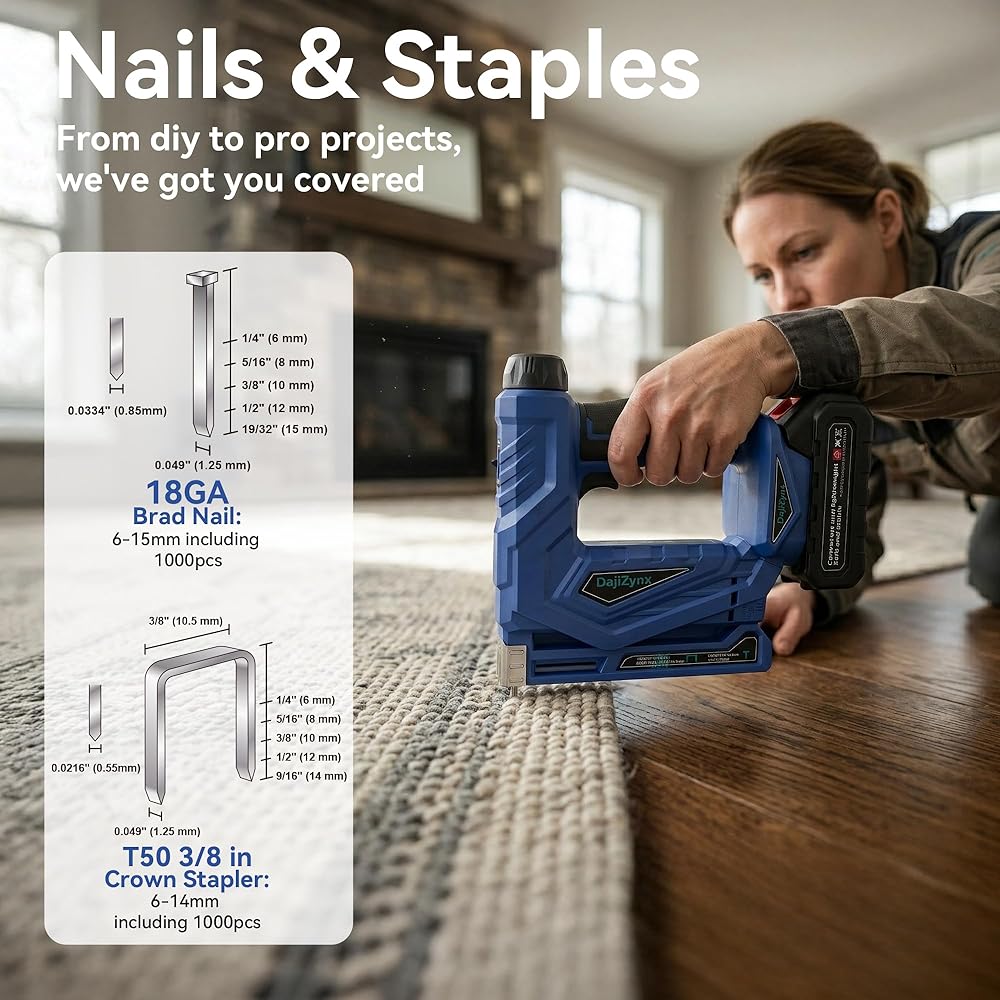 وظيفة مزدوجة 2 في 1: تجمع بين أداة تثبيت المسامير والدباسة في أداة واحدة - مما يزيل متاعب تبديل الأدوات للقيام بمهام الأعمال اليدوية والتنجيد والأعمال الخشبية