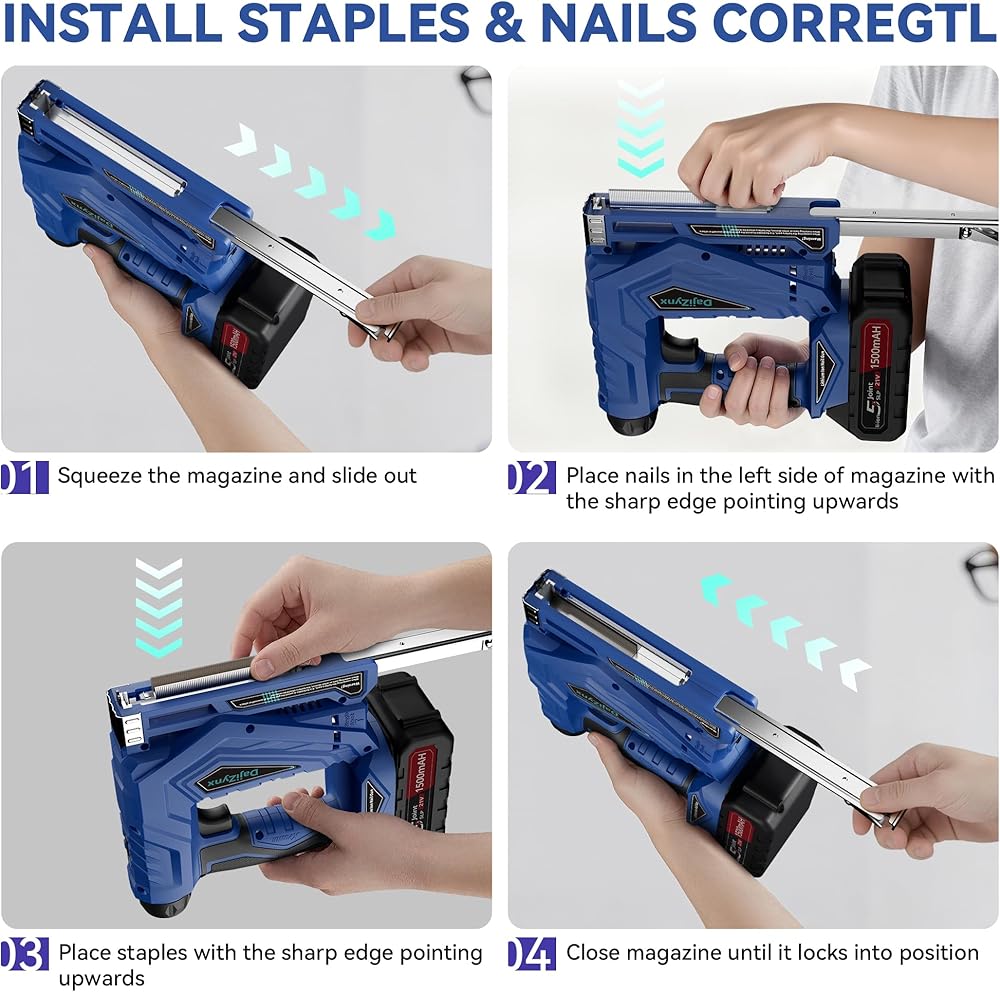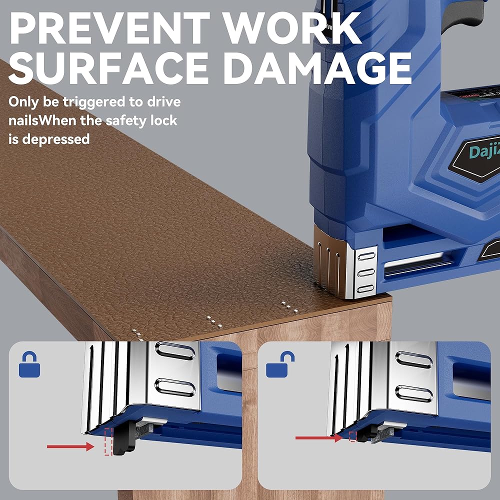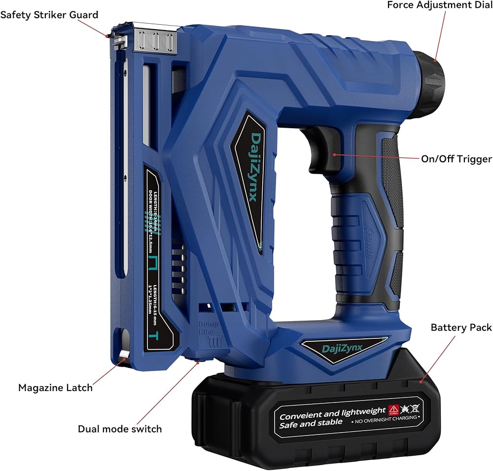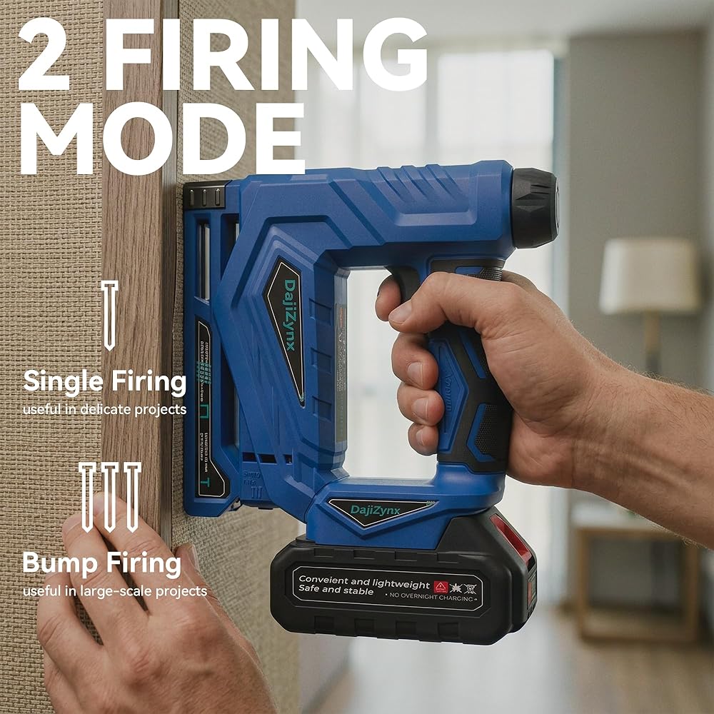 وظيفة مزدوجة 2 في 1: تجمع بين أداة تثبيت المسامير والدباسة في أداة واحدة - مما يزيل متاعب تبديل الأدوات للقيام بمهام الأعمال اليدوية والتنجيد والأعمال الخشبية
