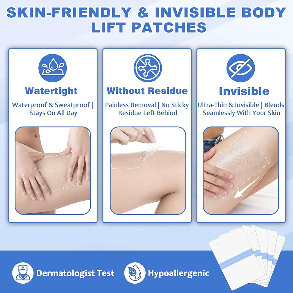شريط رفع الفخذ للبشرة الرخوة، رقع غير مرئية مقاومة للماء لشد الساقين، وتقليل احتكاك الفخذ، ورفع ورقع الساقين للبشرة المترهلة، والمعدة، والذراعين، وشريط الجسم للنساء، صندوق واحد