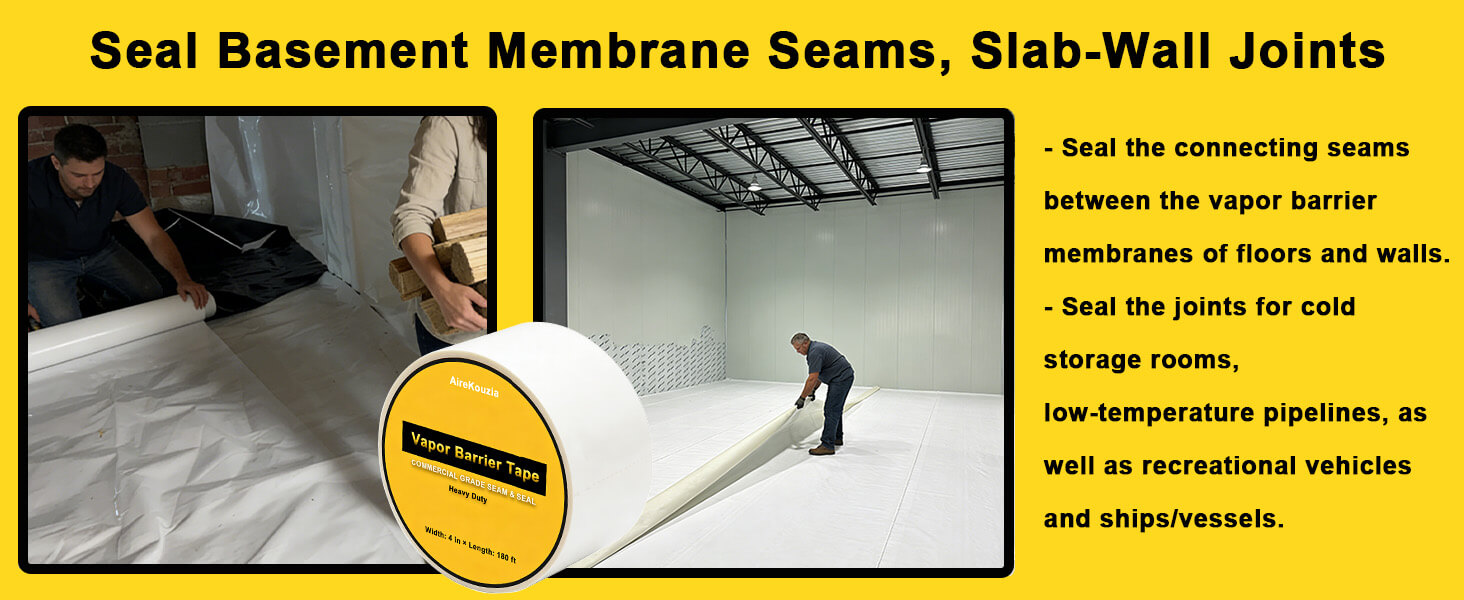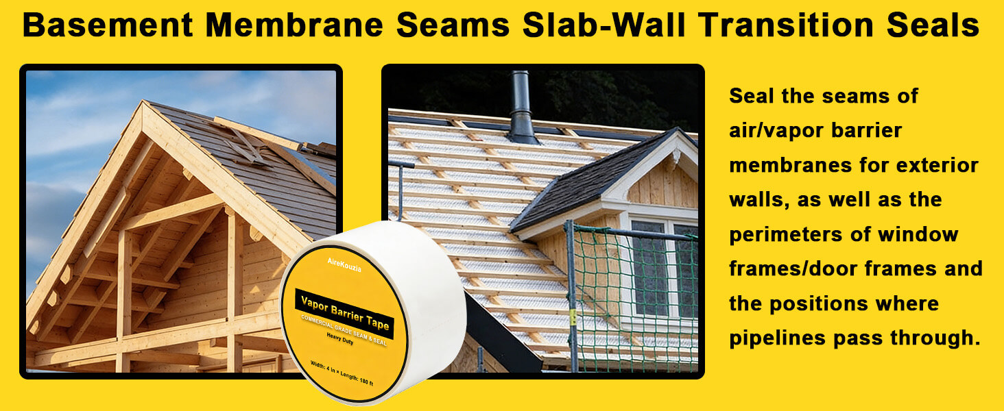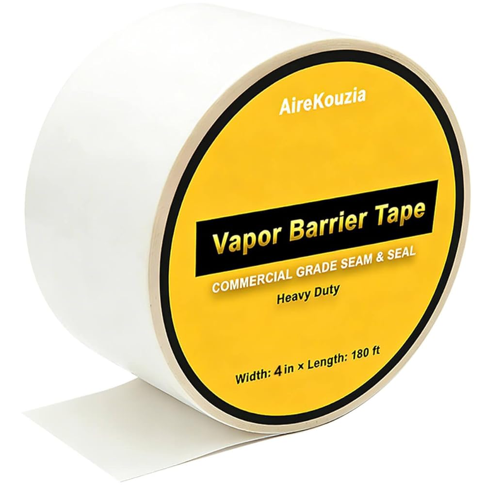 شريط حاجز بخار الزحف - 4 بوصة × 180 قدم ختم قوي لحواجز الرطوبة من البولي إيثيلين وشريط العزل، شريط التماس الأبيض (1)