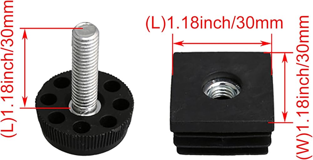 • Size: 30mm x 30mm+30mm adjusting foot, total length: 38mm, screw length: 30mm, thread: M8. If you do not understand the size, please check the size in the picture. The size may have 1-3mm error. Please confirm the size before purchasing.
