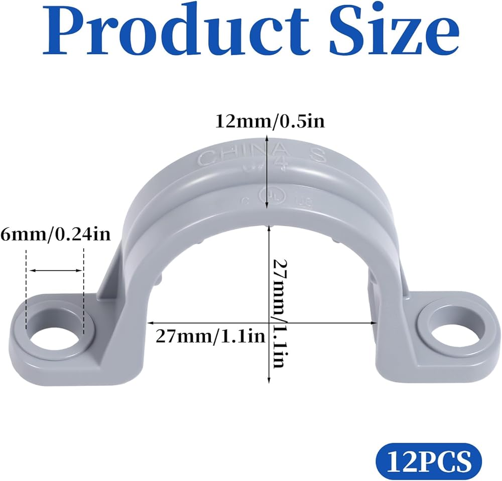 Precise Specifications: The conduit clamps are 3/4-inch in size, specifically designed for pipes with an inner diameter of 3/4 inch. The clamp width is 12 mm, the hole diameter is 6 mm, and the thickness is 4 mm. Each pack contains 12 conduit clamps to meet everyday needs.