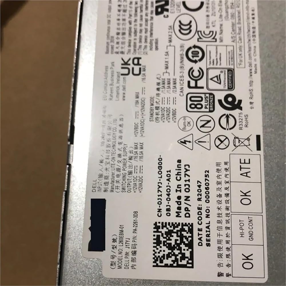 0J17JY 0WYHR8 02KG1D 0T5K83 مصدر الطاقة لـ Optiplex 3080 5080 5090 7080 7090 5890 MT 6 + 4 + 4Pin 260 واط