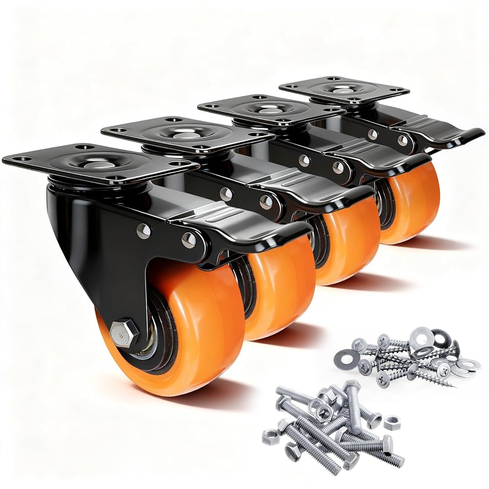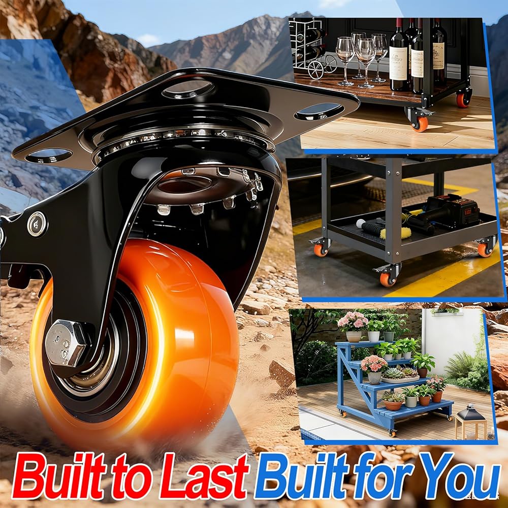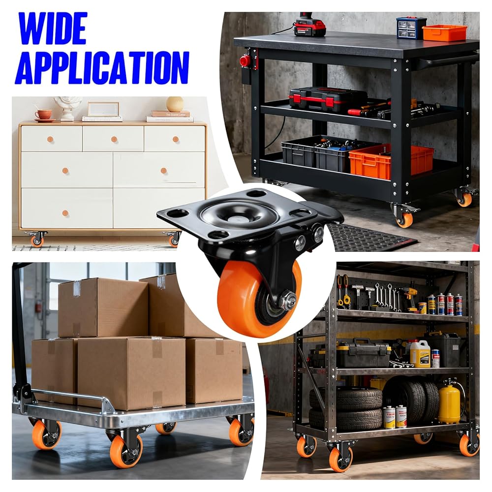 【🔇 دوران هادئ وصديق للأرضيات】 تنزلق عجلات البولي يوريثان الناعمة بهدوء وتحمي الأرضيات من الخدوش أو العلامات - مثالية للأسطح الصلبة أو البلاط أو الأسطح المصفحة. لا مزيد من الصرير أو تلف الأرضية.