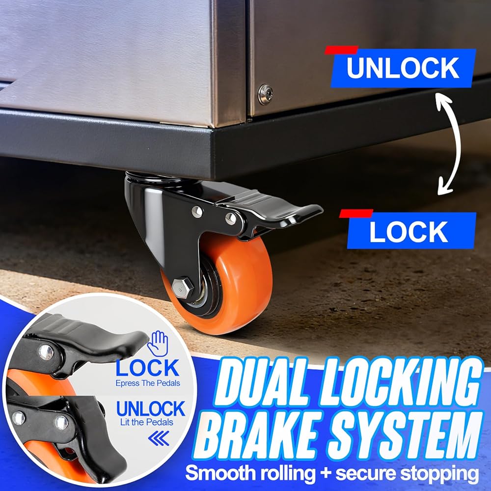 【🛑 نظام قفل مزدوج آمن】قل وداعًا للأثاث المنزلق! يحافظ القفل الدوار والقفل المدمج على ثبات كل شيء عندما تريده. تصميم بسيط للضغط على القفل يجعل تغيير الوضع سهلاً ومستقرًا.