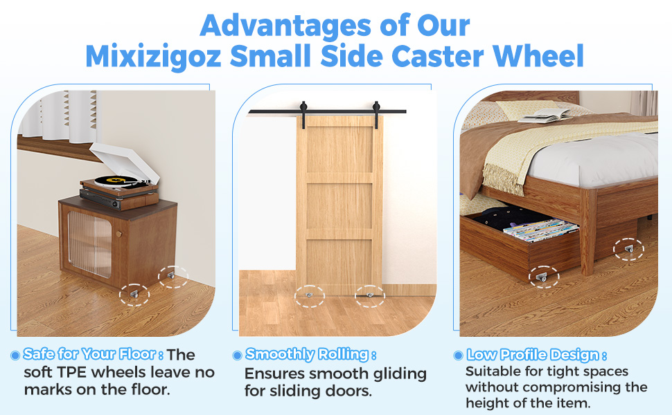 استخدام متعدد السيناريوهات: عجلات تثبيت جانبية صغيرة مقاس 1 بوصة من Mixizigoz تعمل بشكل جيد لأدراج التخزين أسفل السرير، وصناديق التخزين، والأبواب المنزلقة، والخزائن الصغيرة، وحوامل النباتات، وعربة المطبخ المنزلقة، والصواني والمشروعات التي تصنعها بنفسك.
