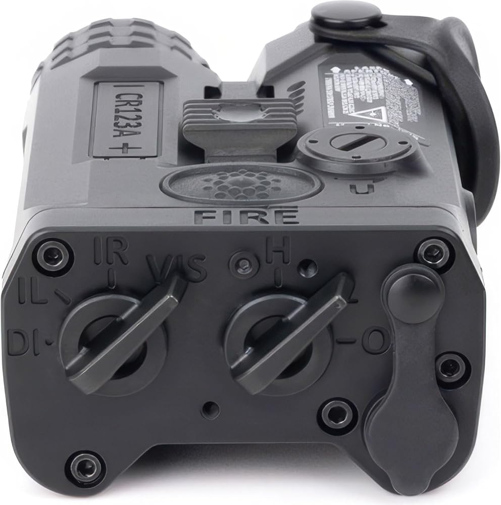 IRIS-RD3 is a triple function multi-laser device with a redesigned 7075 aluminum housing that is 43% lighter and sits 20% lower than the previous model. IRIS 3 now boasts a powerful 60mW IR (infrared) illuminator along with a VIS (visible) laser pointer and infrared (IR) laser pointer. Additionally, the IRIS-RD 3 now features a center-positioned fire button for ambidextrous activation of momentary or constant ON functions. IRIS-RD 3 also features updated, rear-facing power and mode selector switches with improved ergonomics and feel. An all-new, ultra-compact two-button remote activation switch features a VIS override function and is included. IRIS 3 is available with either a green or red VIS laser pointer.