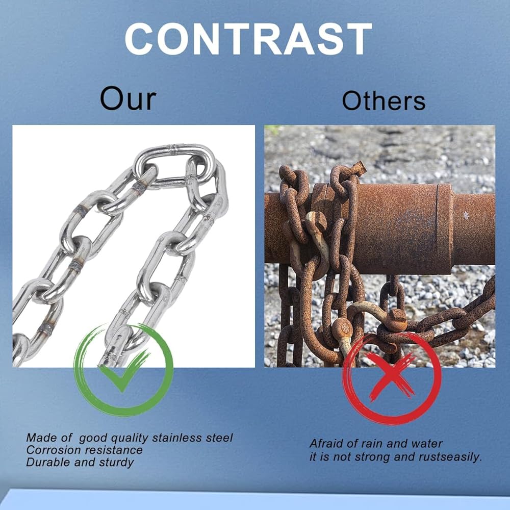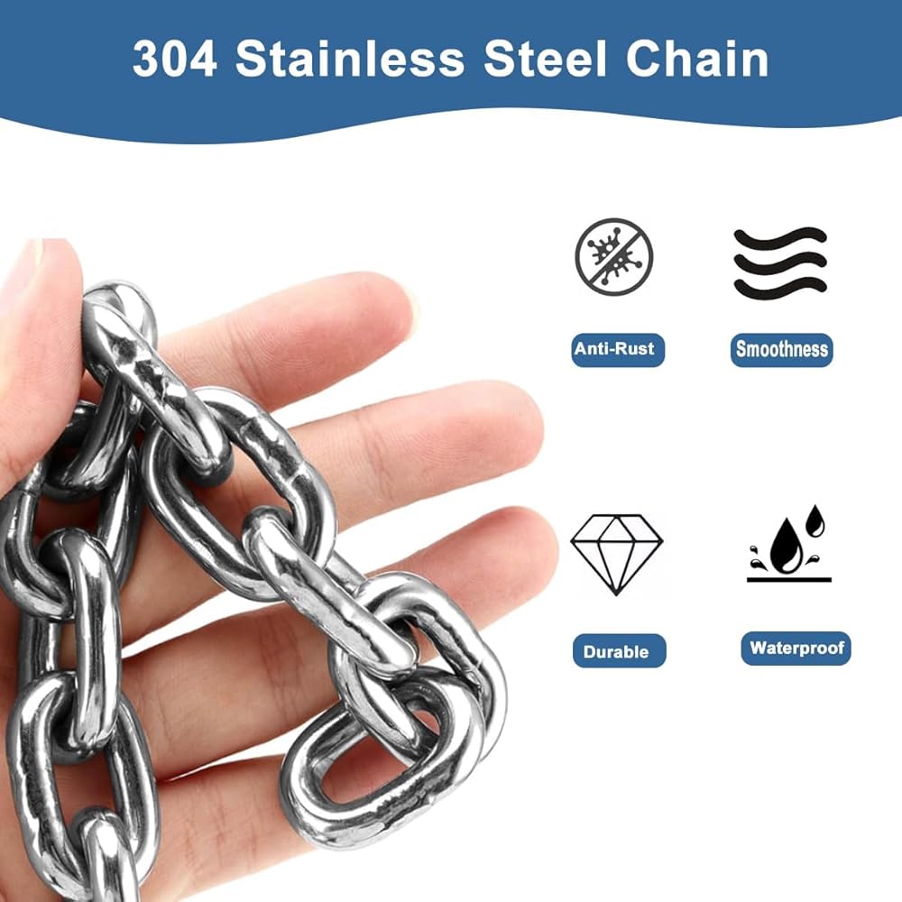 Outdoor & Indoor Use: Stainless steel chain has high strength, high rigidity and good heat/cold resistance, so you can use it indoors or outdoors