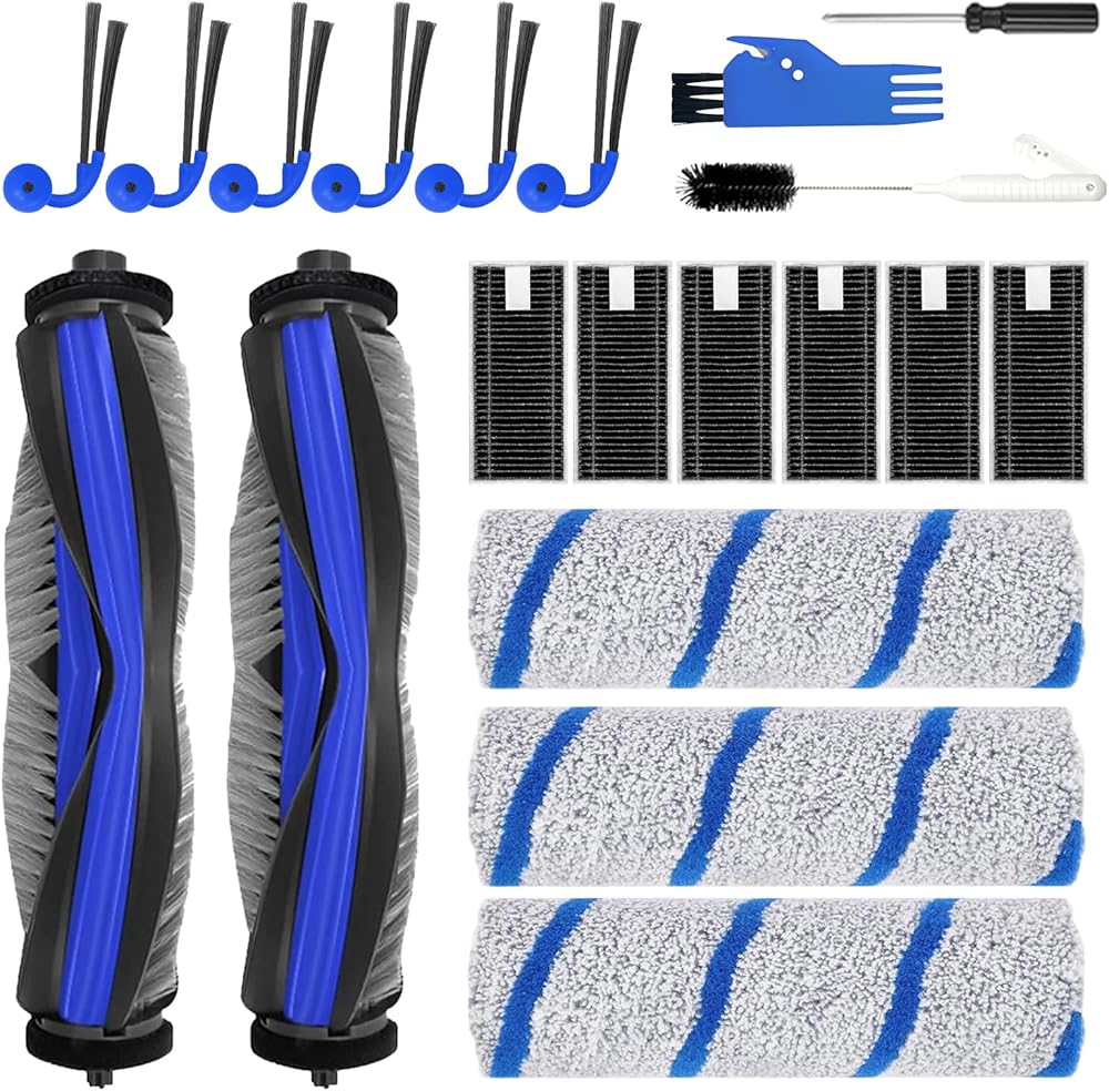 قطع غيار لمكنسة ECOVACS DEEBOT X11 OmniCyclone/X11 Pro Omni /X9 Pro Omni/T80S Omni Robot Vacuum، مجموعة الملحقات: فرشتان رئيسيتان، 6 مرشحات، 3 وسادات ممسحة دوارة، 6 فرش جانبية، 3 أدوات