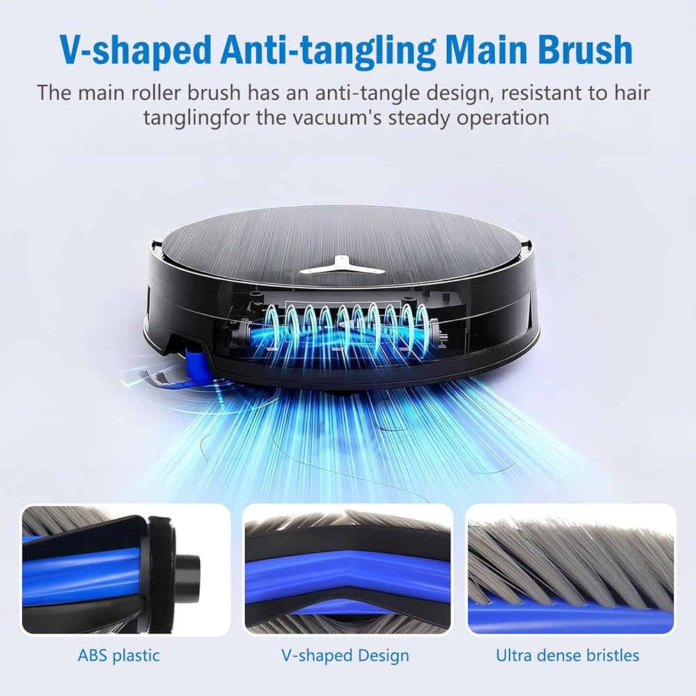 • 【مواد ممتازة ومتينة】: تتميز الفرشاة الرئيسية بتصميم حلزوني مضاد للتشابك على شكل حرف V ومادة مطاطية ناعمة مضادة للكهرباء الساكنة، مما يمنع تشابك الشعر بشكل فعال. فهو يزيل بشكل فعال الأوساخ المختلفة وشعر الحيوانات الأليفة من الأرض، مما يقلل من تآكل المحرك ويطيل عمر المكنسة الكهربائية الروبوتية. تتميز الفرش الجانبية بتصميم قوس غير متماثل فريد من نوعه، وذلك باستخدام قوة الطرد المركزي لتوصيل الشعر والأوساخ تلقائيًا إلى أطراف الشعيرات، وتنظيف كل زاوية وشقوق بسهولة.