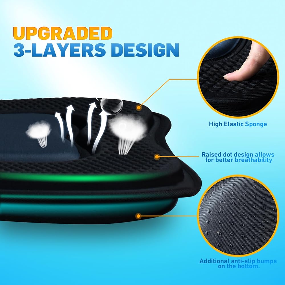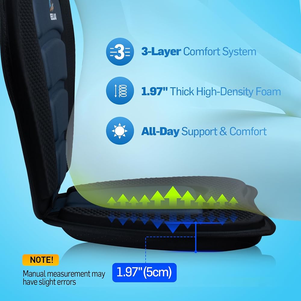 راحة فائقة للتجديف لساعات طويلة: تتميز وسادة مقعد الكاياك EELLAO بتصميم ثلاثي الطبقات بسمك 1.97 بوصة. إنها وسادة مقعد سميكة خصيصًا مصممة لتوفير راحة أكبر. يوفر التوازن المثالي بين النعومة والدعم القوي. الجزء السفلي مجهز بأشرطة فيلكرو قوية، مما يضمن ملاءمة آمنة وغير قابلة للانزلاق للسلامة والراحة طوال وقتك على الماء.