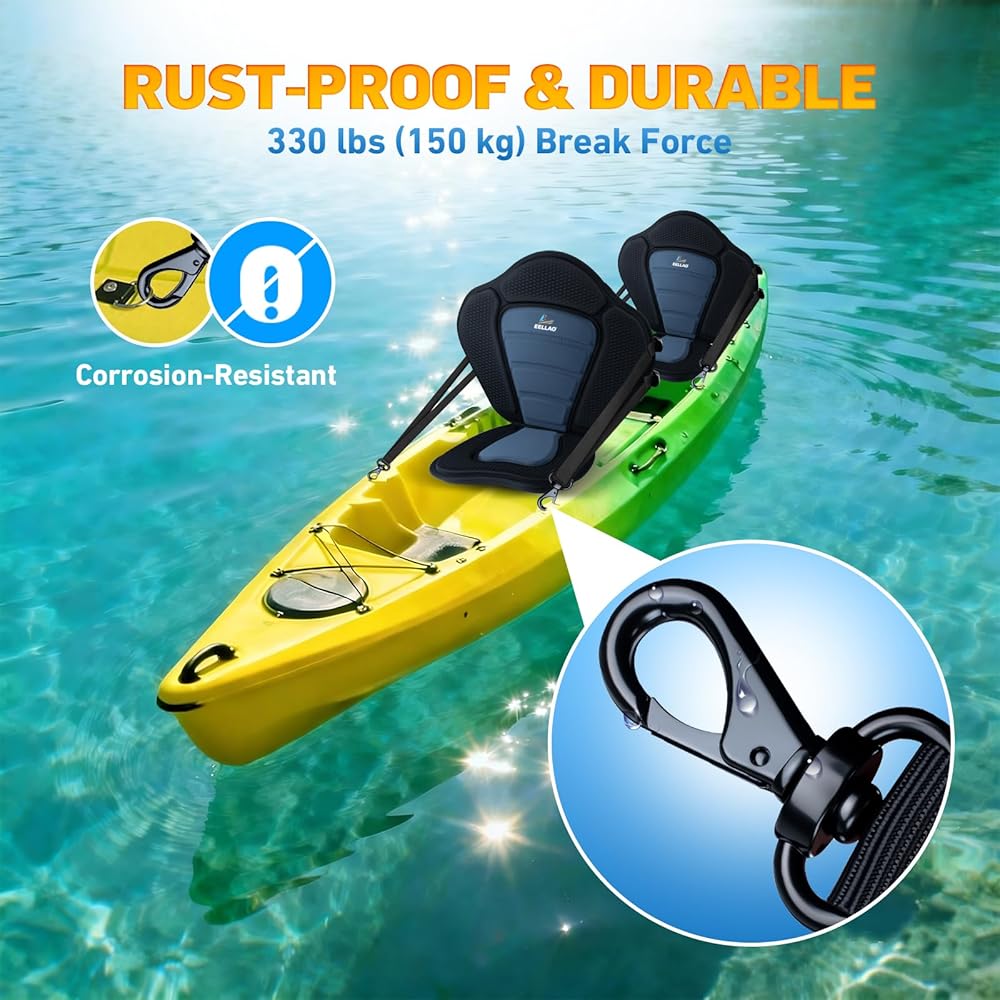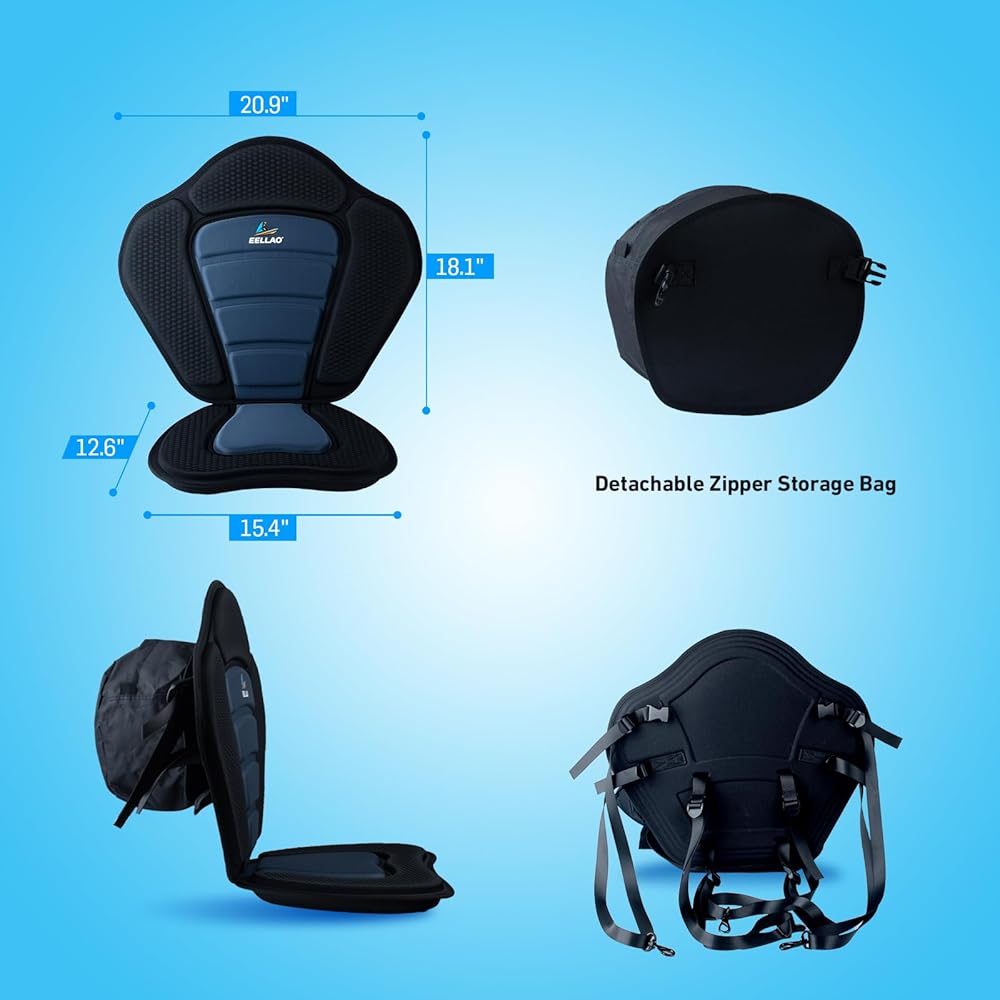 تصميم مريح عالي الظهر: يشتمل مسند ظهر كرسي الكاياك EELLAO على لوح من البولي إيثيلين الصلب مقاس 3 مم لتعزيز دعم أسفل الظهر، وتخفيف التعب بشكل فعال من جلسات التجديف الطويلة. وهذا يضمن لك الاستمتاع بتجربة أكثر استرخاءً وممتدة على الماء.