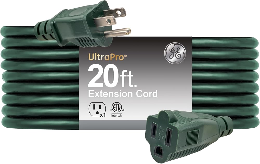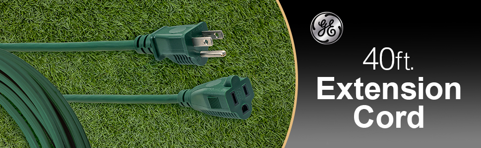 Extend your reach to power outdoor projects with a GE-branded 1-Outlet Extension Cord. This versatile 40ft. indoor/outdoor extension cord features one grounded, three-prong AC outlet to easily extend power from any grounded AC outlet. Rated for indoor and outdoor use, this green extension cord can power electronics, tools, appliances, outdoor décor and more. Whether you're using it as an indoor extension cord in your home, garage, workshop or office, or as an outdoor extension cord for lawn equipment, seasonal décor, landscape lighting and more, this extra-long 40ft. cord easily extends the reach of your outlet. Constructed of 16-gauge cable housed in a durable PVC insulation and jacket, this heavy-duty outlet extender can withstand the toughest conditions while remaining pliable enough to fully extend. The green finish of this durable extension cord allows it to blend naturally with the surrounding landscape. Additionally, the one-piece molded plug ensures a snug fit and a rugged exterior that's built to last. For a sturdy extension cord that goes the distance, look no further than a GE-branded 1-Outlet Extension Cord.