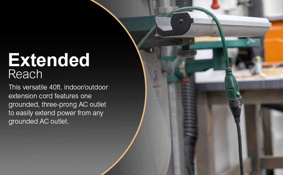 Extended reach – Extra-long 40 ft. cord is great for landscaping accessories like sprinklers, fountains, lighting and lawn decorations, requiring extended reach to the power source
