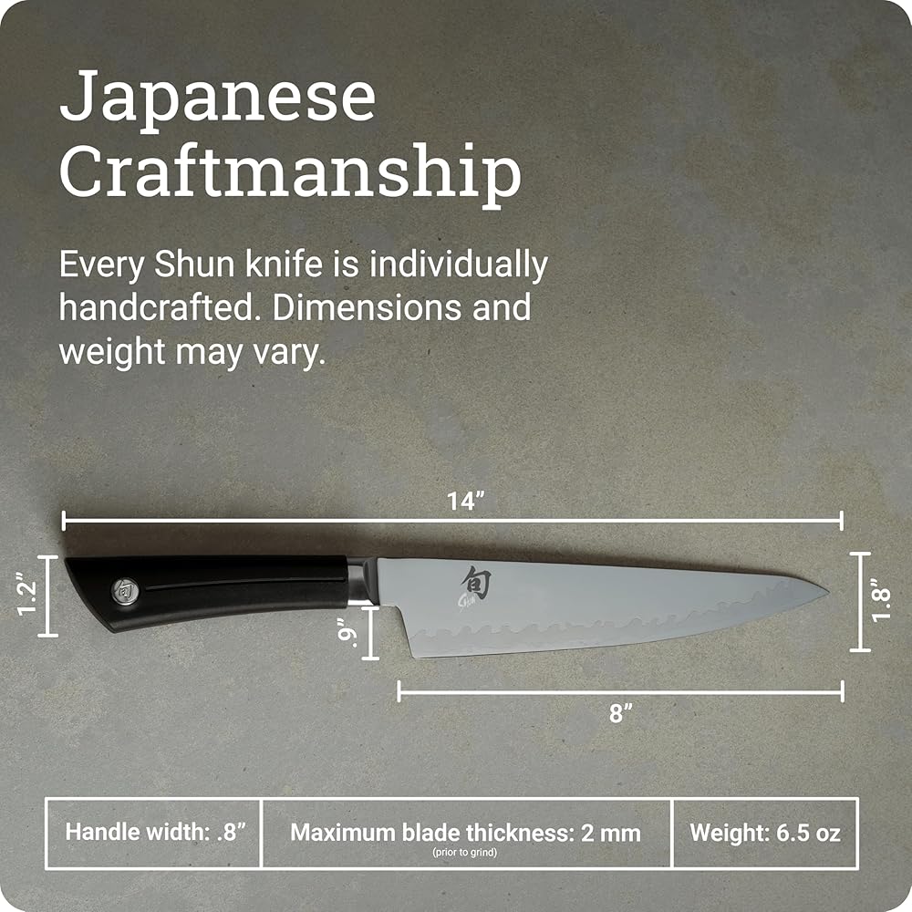 JAPANESE CRAFTSMANSHIP: Each Shun knife is meticulously handcrafted in Japan, reflecting a legacy of traditional knife-making expertise and a dedication to superior quality.