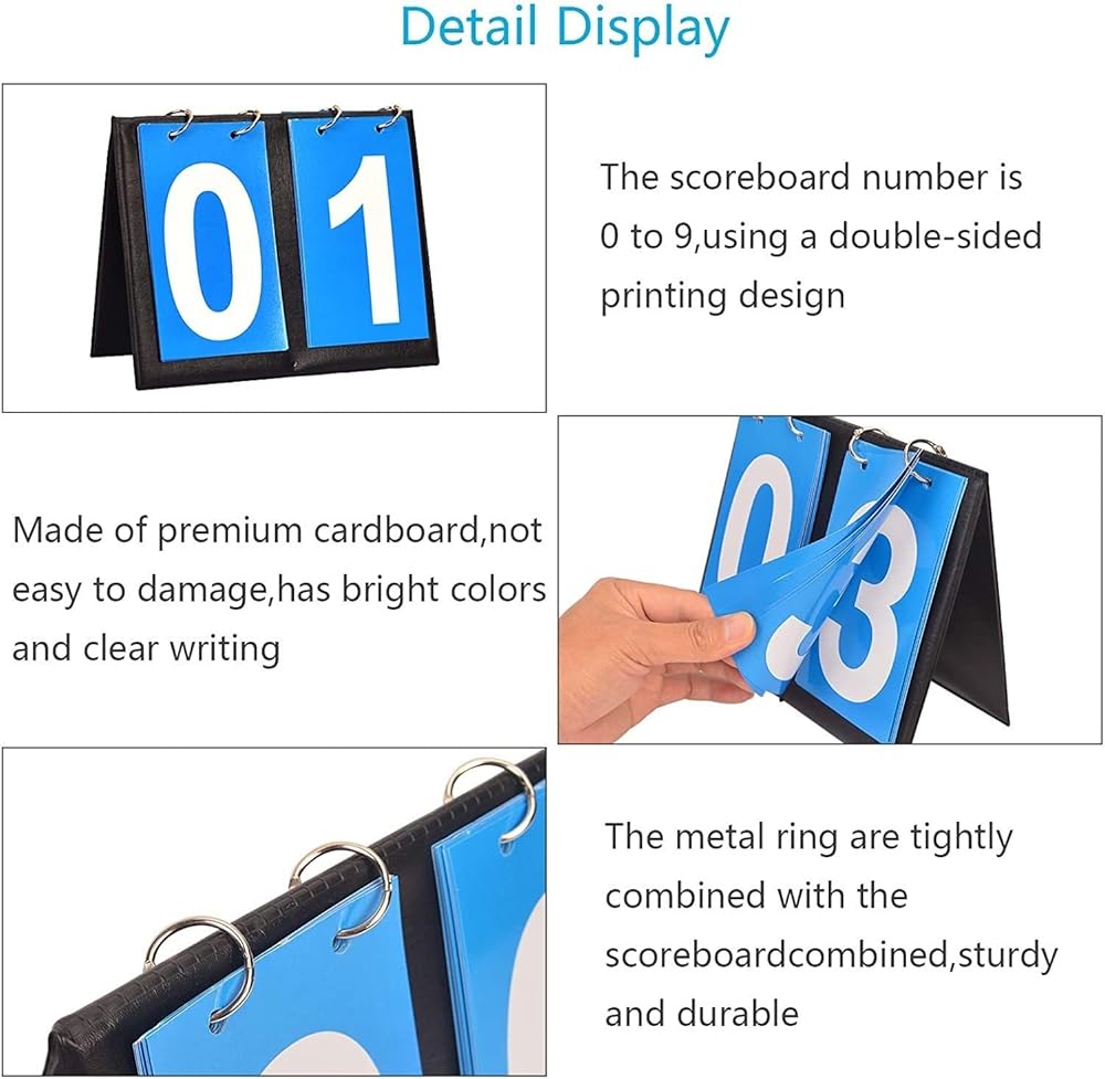 Package Includes:The package has 2pcs digital scoreboards,one with the blue background,one with the red background and each group containing numbers from 00 to 99.
