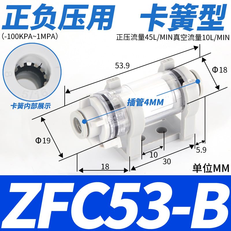 ZFC100-06B فلتر تفريغ الهواء لخط أنابيب الضغط السلبي الهوائي 200-08B خرطوشة ZFC54-B صغيرة 1 قطعة(ZFC53-B(卡簧型))