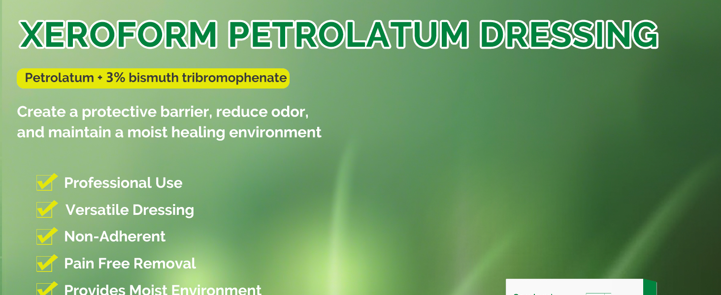 • مع استخدامات متعددة قابلة للتطبيق: تتكيف وسادات الشاش Xeroform مع الضمادات الجراحية، وتضميد الصدمات، واحتياجات تضميد الحروق. مثالي للإمدادات الطبية، فهو يعالج الشقوق الجراحية والتمزقات والسحجات وترقيع الجلد والقروح وإصابات الضغط وجروح الصدمات وأنواع الجروح الأخرى