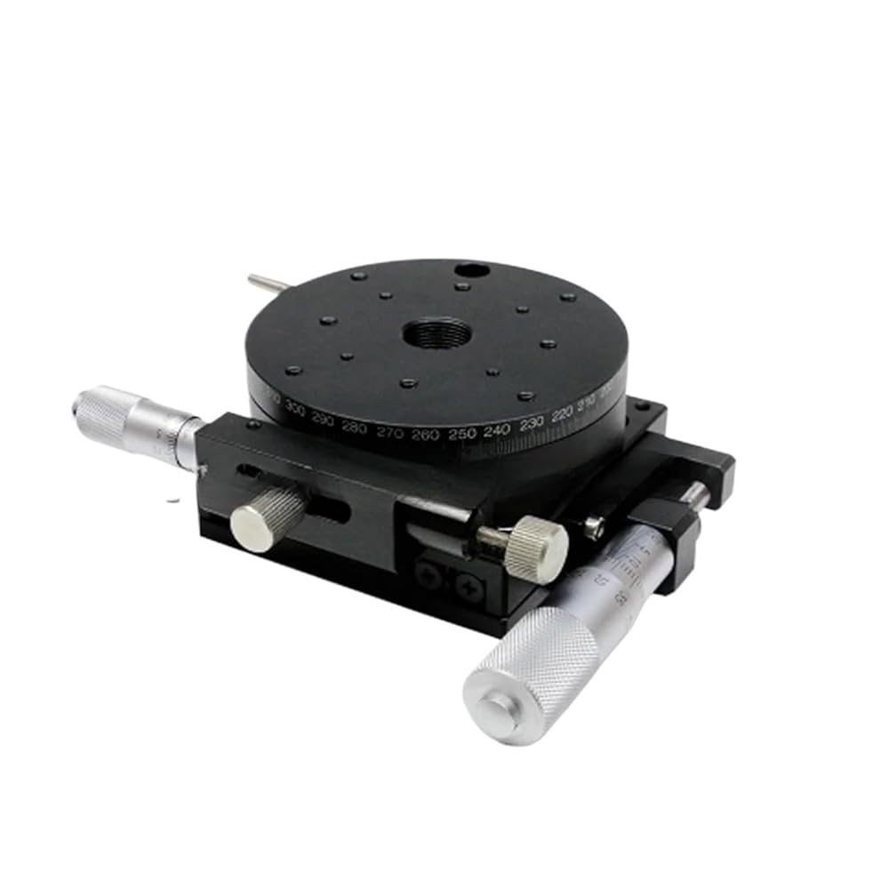 Travel: X axis ±12.5mm; R axis: fine adjustment ±5 degrees; coarse adjustment 360 degrees