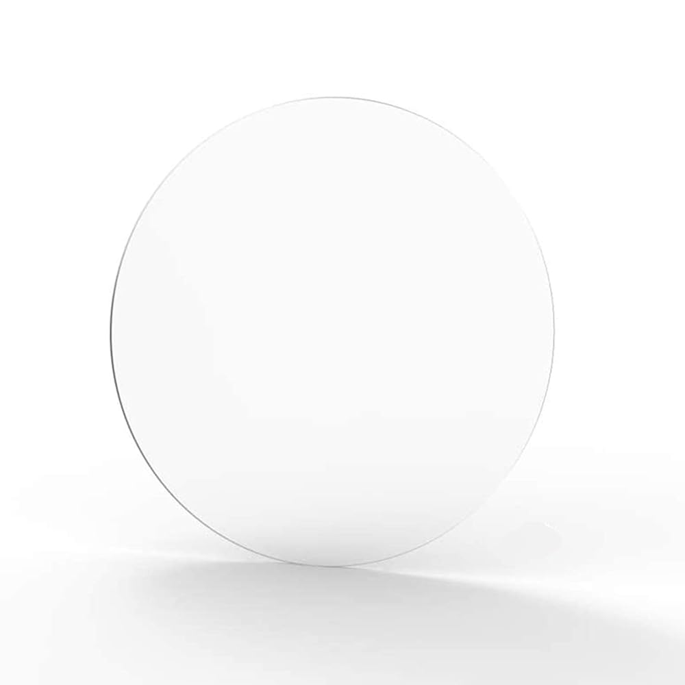 This frosted acrylic Plexiglass disc is commonly used for displays, stands, signage, and many other applications. The acrylic material is clear, lightweight, and impact resistant. Acrylic is about 8 times stronger and tougher than glass, it is lightweight and easy to shape or fabricate. You're able to use an acrylic sheet that is twice the thickness but still weighing about half the weight of a conventional glass sheet. Choose acrylic when you're concerned for safety and handling.