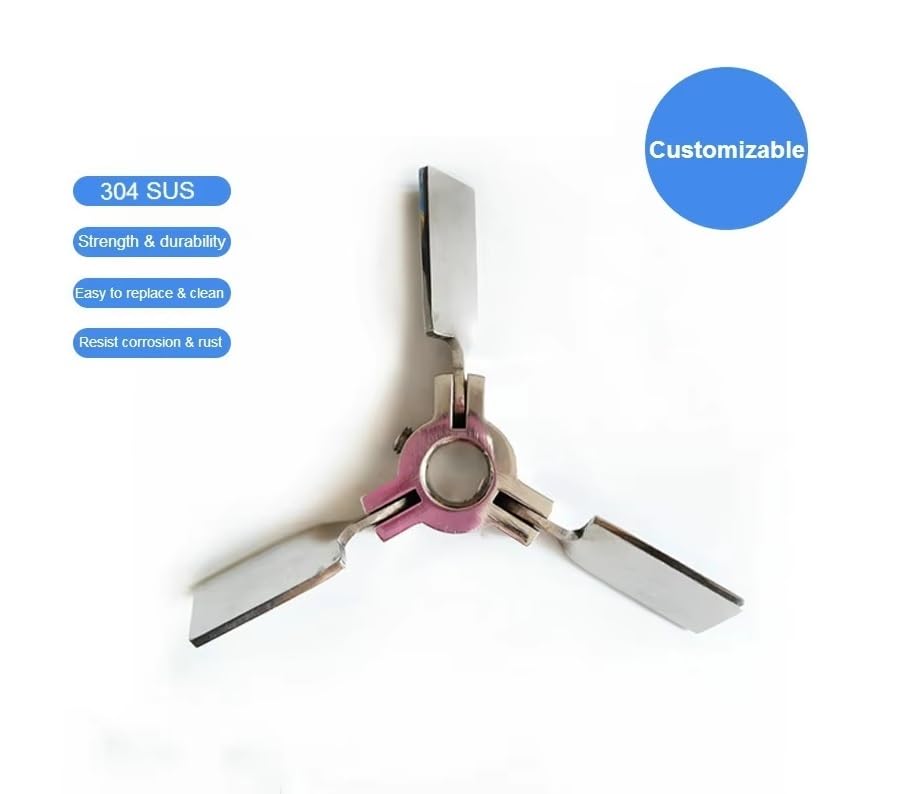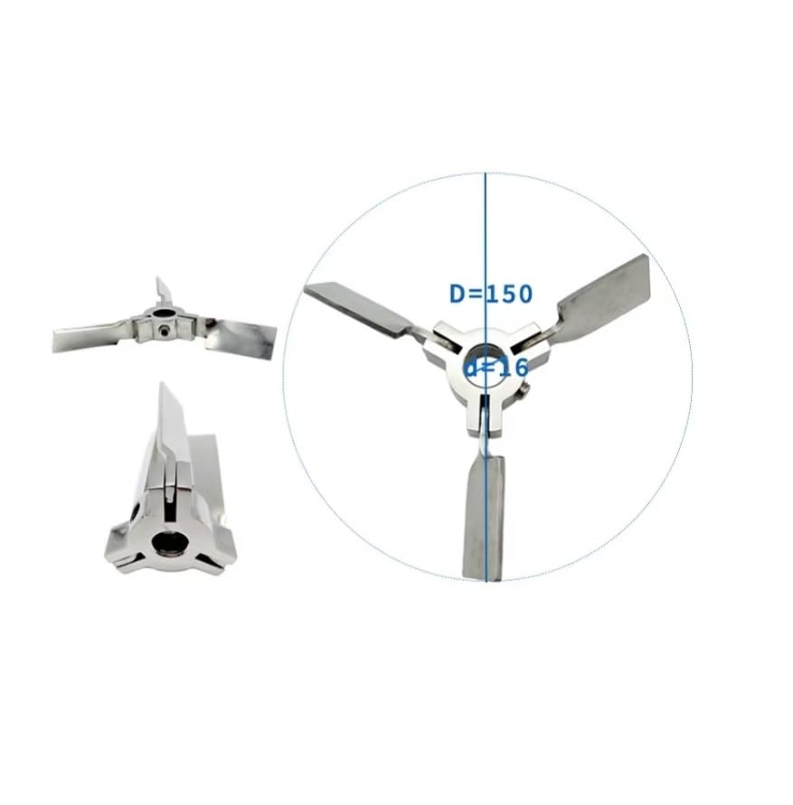 ضجة بليد الفولاذ المقاوم للصدأ خلاط المكره مختبر النمام مجداف للطي ثلاثة شفرة طول 65 ملم بقطر. قطر الثقب الداخلي 150 ملم. 16 ملم