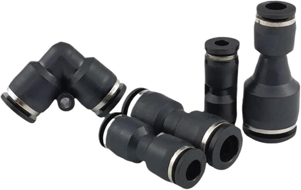 Black Pneumatic Air Hose Connector With Right Angle Variable Diameter Straight Through Quick Plugs PV/PG/PU4/6/8/10/12 1Pcs