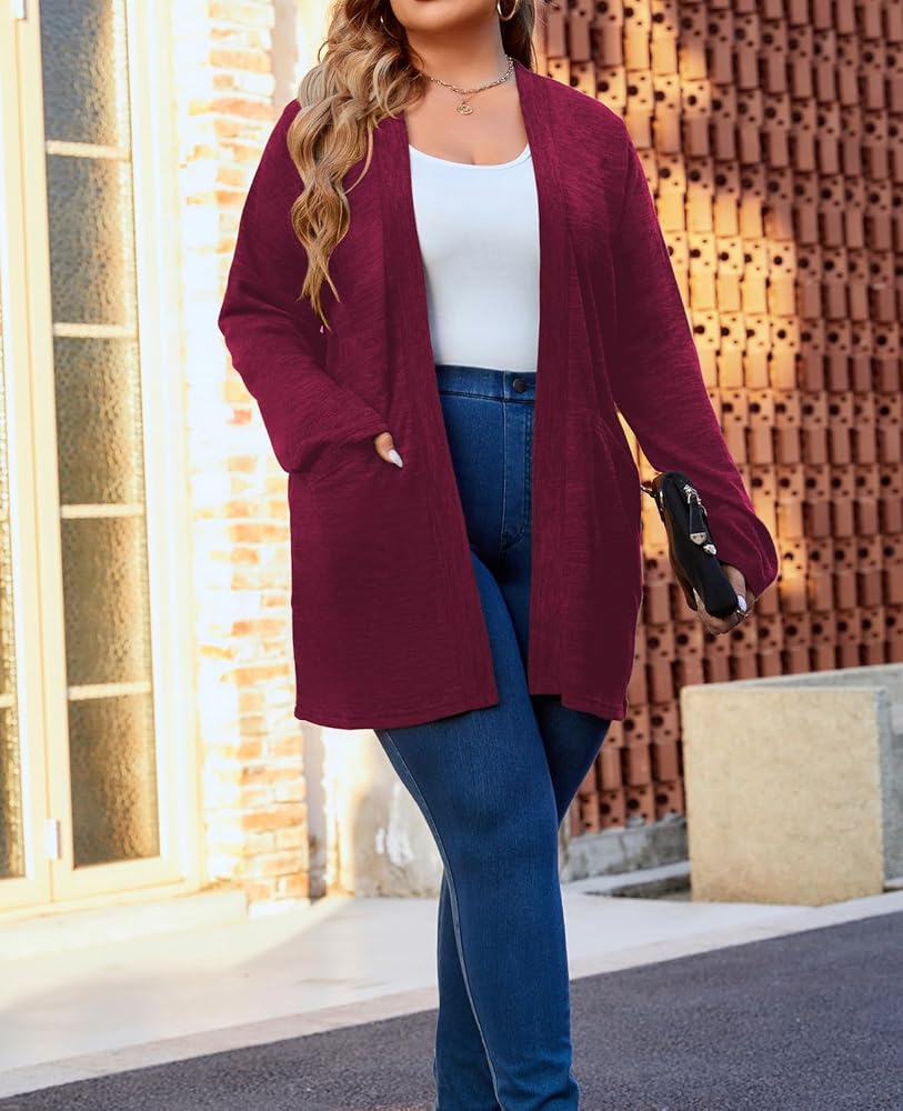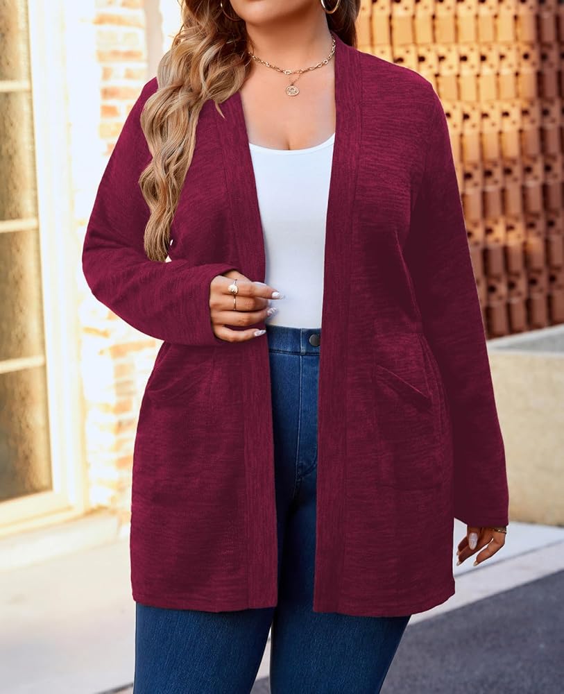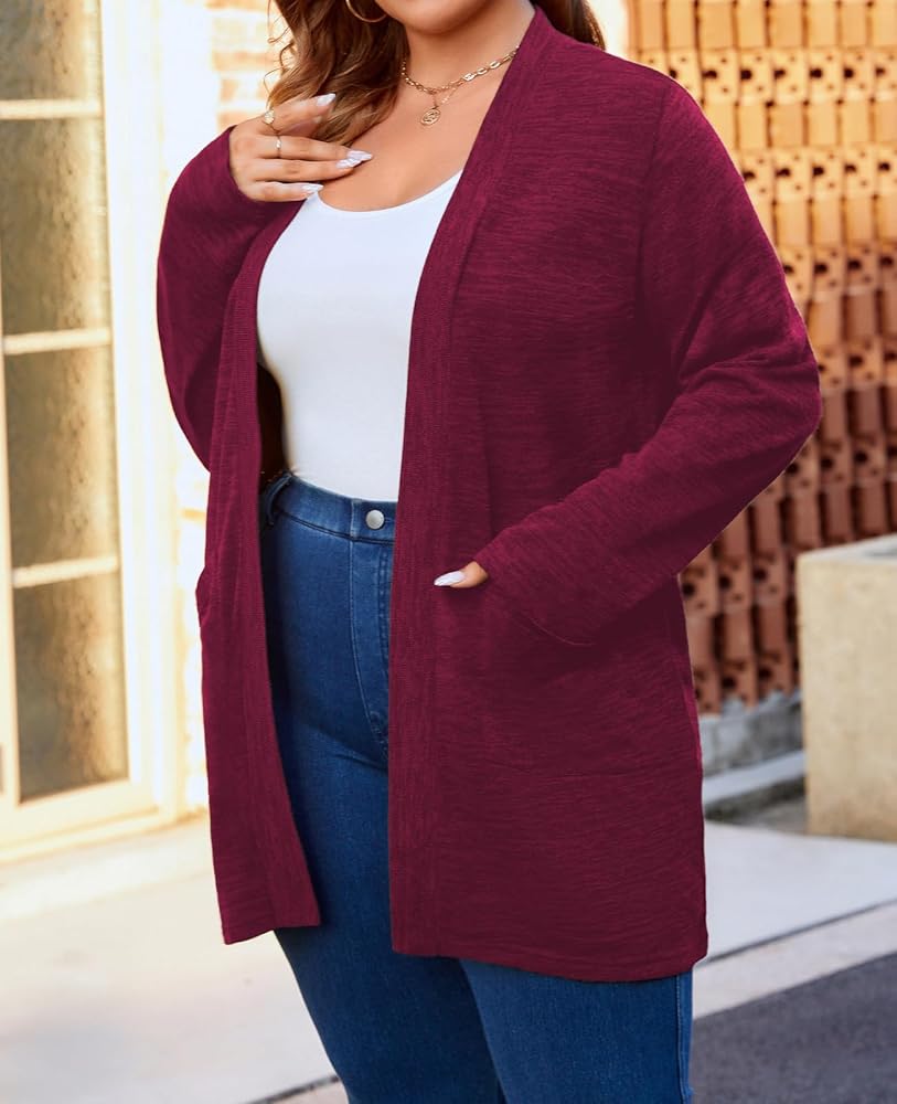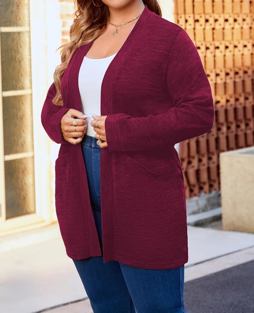 • سترة صوفية نسائية بمقاس كبير - من السهل تنسيق السترات الصوفية المحبوكة الصلبة مع القمصان والقمصان بدون أكمام وما إلى ذلك، كما أن السترة المحبوكة المفتوحة من الأمام تسمح لقميصك بالظهور تحته ويبدو أنحف من الناحية البصرية.